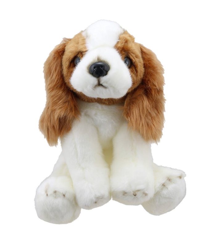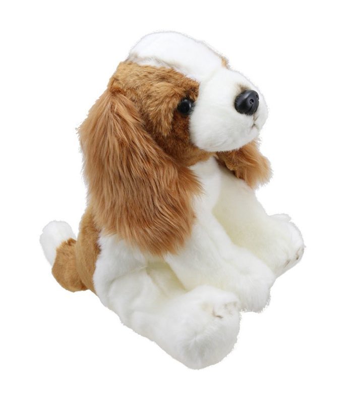 כלב הקינג צ’ארלס מלא קסם, עם פנים מתוקות, אוזניים רכות ועיצוב ריאליסטי, מחווה לגזע האהוב הזה, ותוספת מקסימה לאוסף הבובות.
