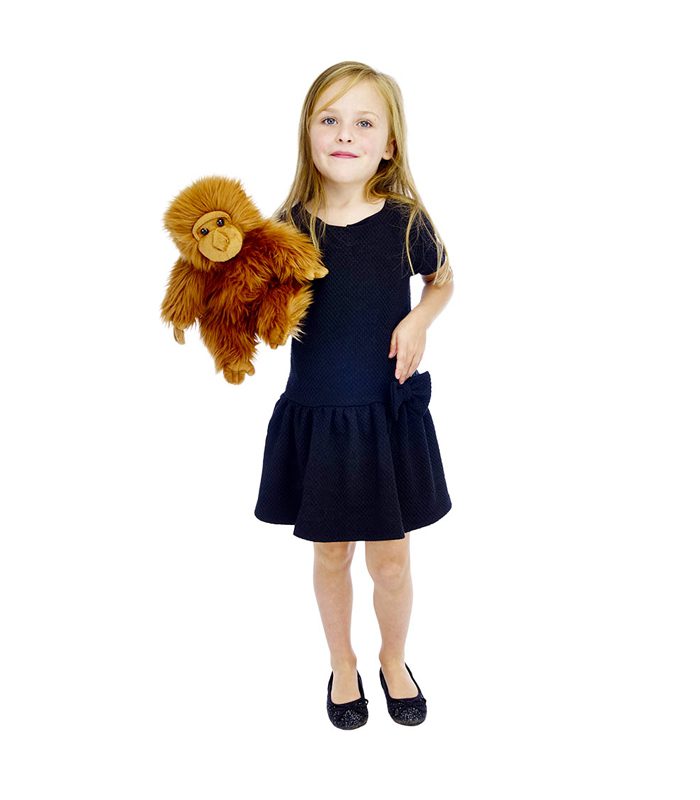 בובת אורנגאוטן רכה ונעימה שכיף להתכרבל איתה, ושהיא גם בובת כפפה בעיצוב ראליסטי של היצור העדין, עם זרועות ארוכות ופרווה מיוחדת.