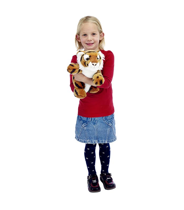 בובת נמר רכה ונעימה שכיף להתכרבל איתה, ושהיא גם בובת כפפה בעיצוב ראליסטי של הוד מלכותו הטיגריס, עם עיטורי הפרווה הלבנים והפסים המפורסמים. נראית נהדר גם בישיבה על המיטה או המדף כשלא משחקים איתה. 🐯