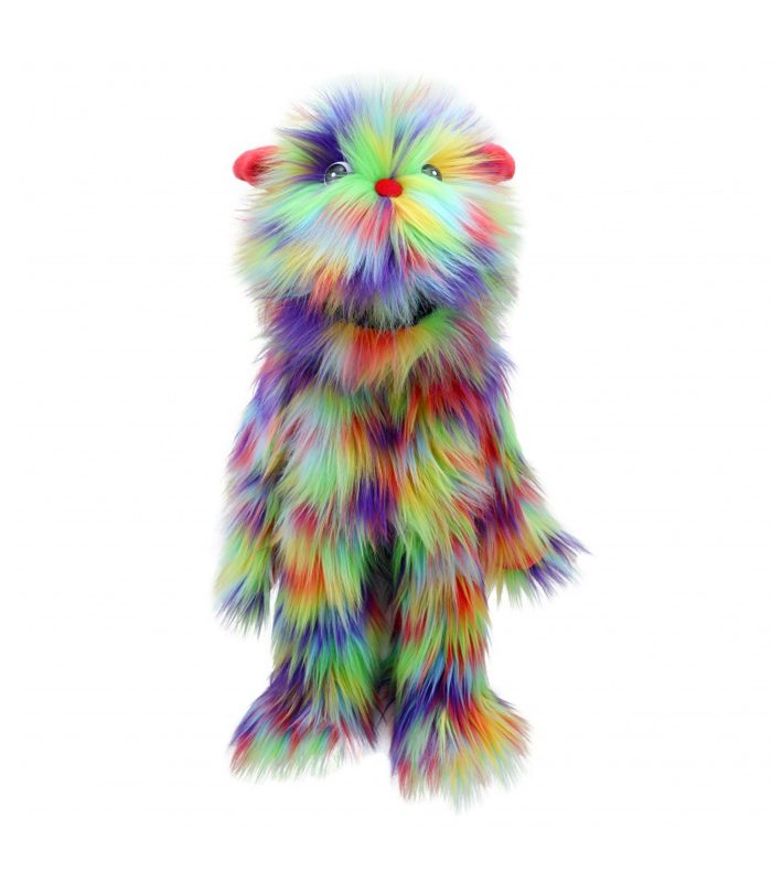 בובת כפפה מפלצת מתוקה וצבעונית עם עיניים תמימות, באיכות גבוהה ועם פרטים מושלמים, עשוייה בד יפהפה ונעים.