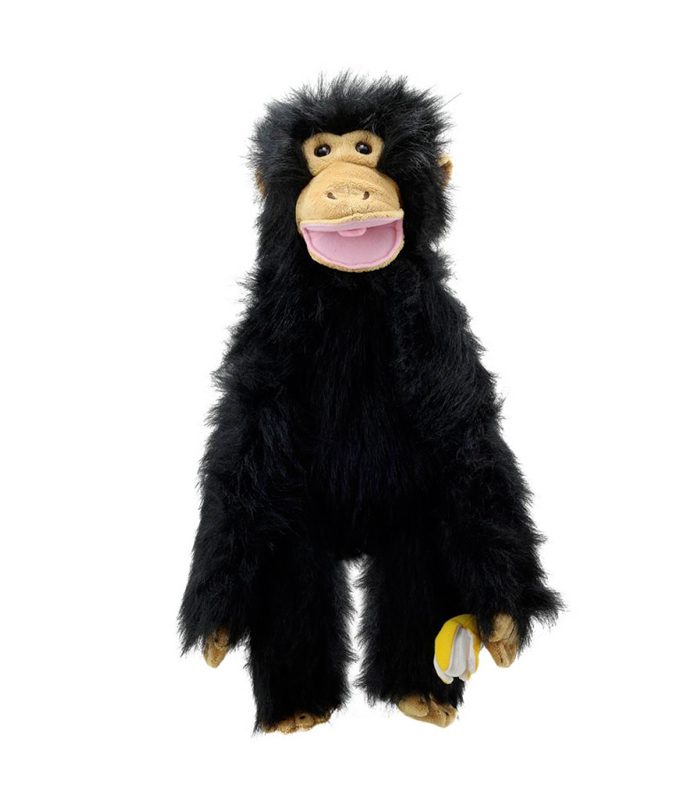 בובת כפפה שימפנזה בינונית עם הבעה מתוקה, באיכות גבוהה ועם פרטים מושלמים, עשוייה בד יפהפה ונעים.