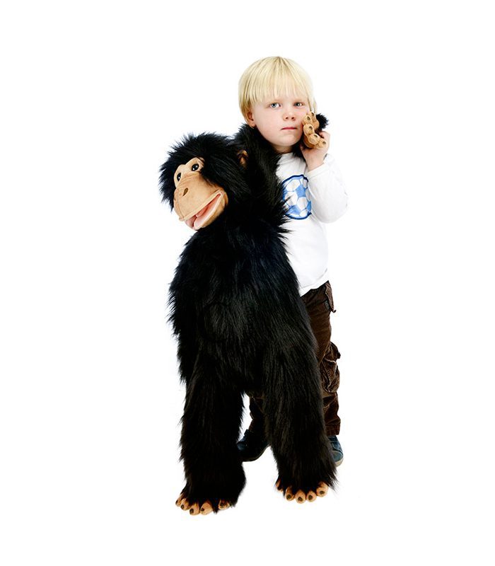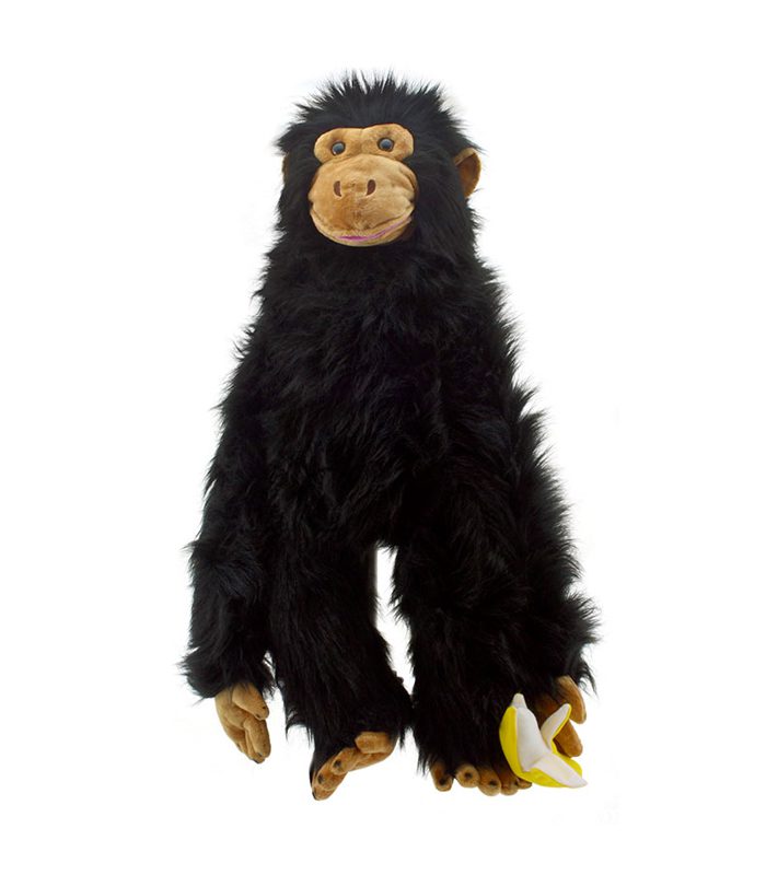 בובת כפפה שימפנזה ענקית עם הבעה מתוקה, באיכות גבוהה ועם פרטים מושלמים, עשוייה בד יפהפה ונעים.