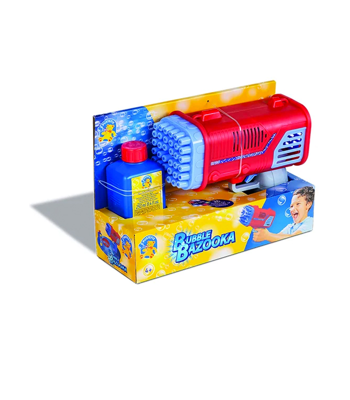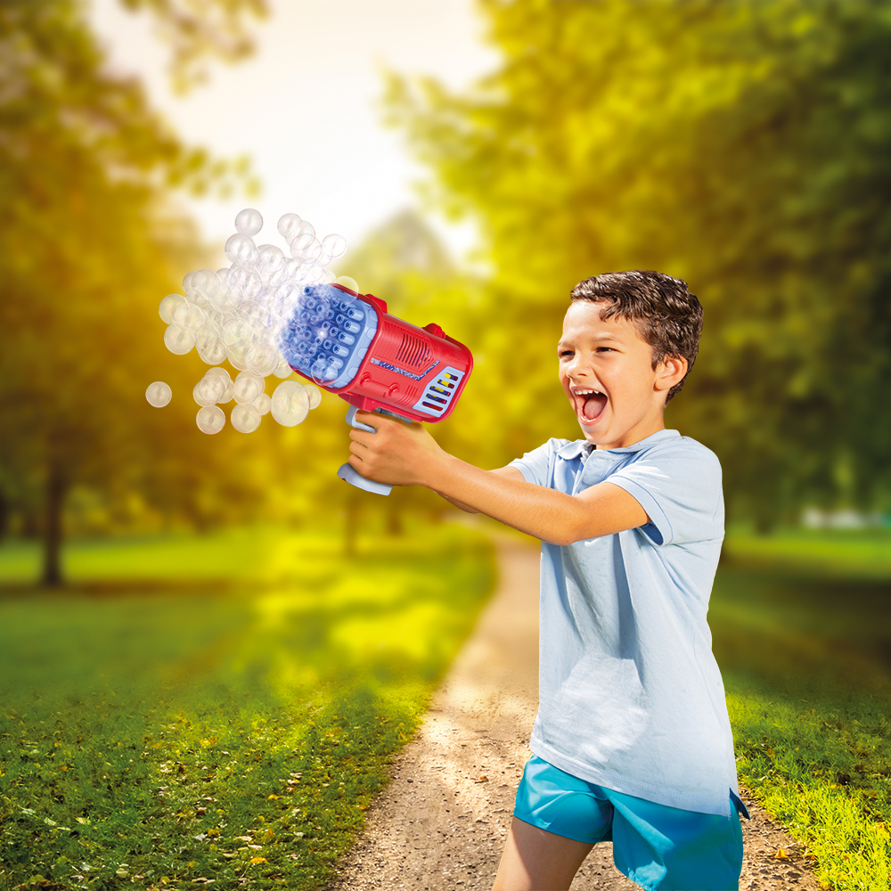 תותח בועות הסבון הוא הדרך הפשוטה והנהדרת להפוך את חיי היומיום האפורים והרגילים לכיף צבעוני ומרגש עם הילדים. בלחיצה על ההדק, הבזוקה תוציא מאות בועות מתוך 36 הטבעות שלה, להנאה אמיתית מבועות סבון נפלאות ומשמחות שילדים כל כך אוהבים 😉