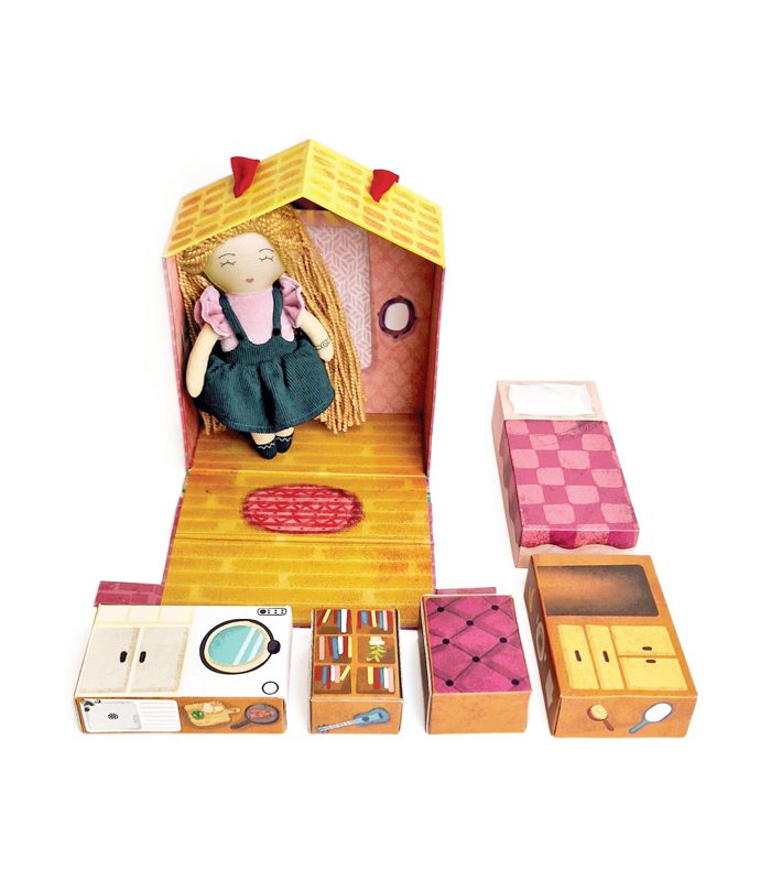 גלו כמה חדרים שונים אפשר להכין כדי לסדר וליצור את בית החלומות תוך יצירת אינספור גרסאות של חדרים המעניקות לבית הבובות אופי רב מימדי. אחרי שמסיימים לשחק, ניתן לאחסן את כל הקופסאות בתוך הבית, יחד עם הבובה. המגנטים שמקיפים את הבית עוזרים לדלת להיסגר וידית הבד הופכת את בית הבובות לנייד, כך שאפשר לקחת ולשחק איתו בכל מקום.