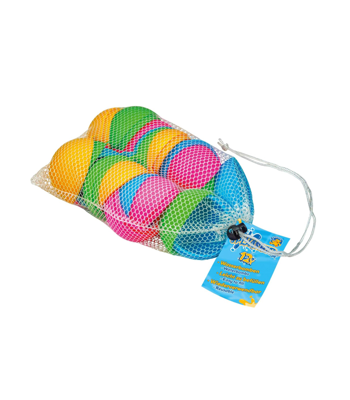 סט 12 בלוני סיליקון צבעוניים, לשימוש רב פעמי, בתיק רשת.