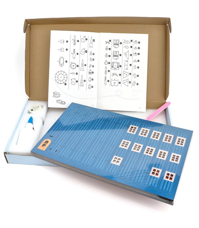 בערכה: 113 חלקים, מנורה, דבק וחוברת הנחיות.