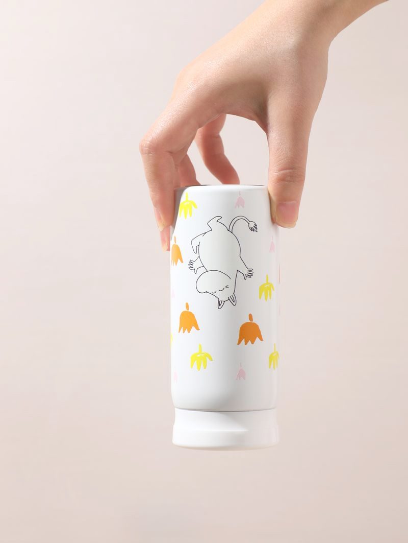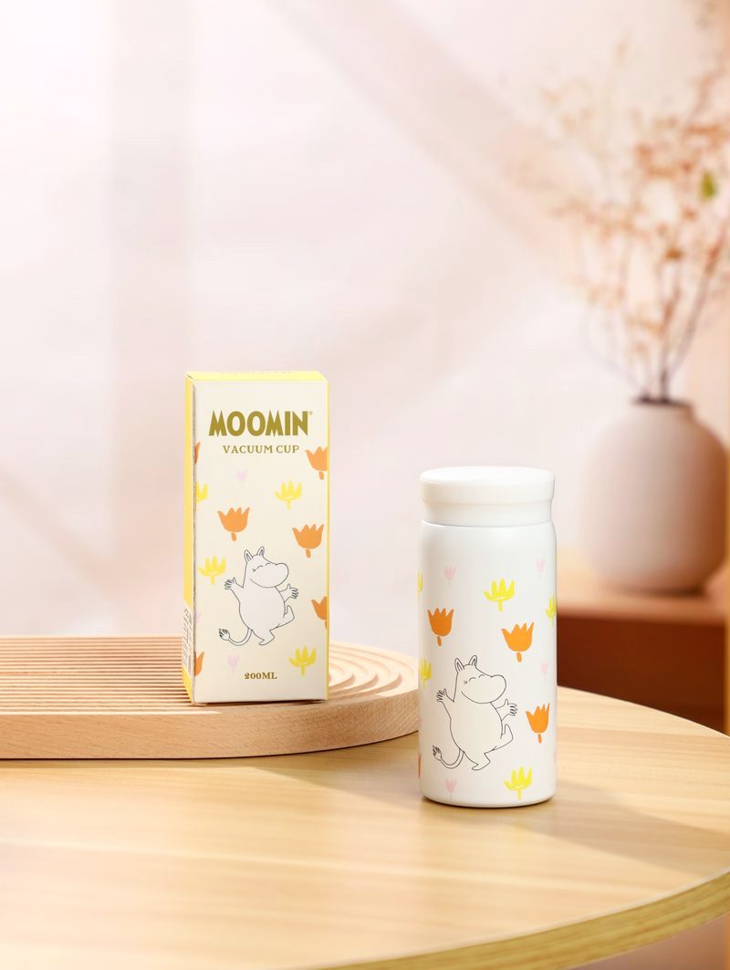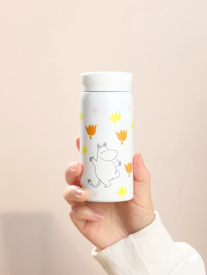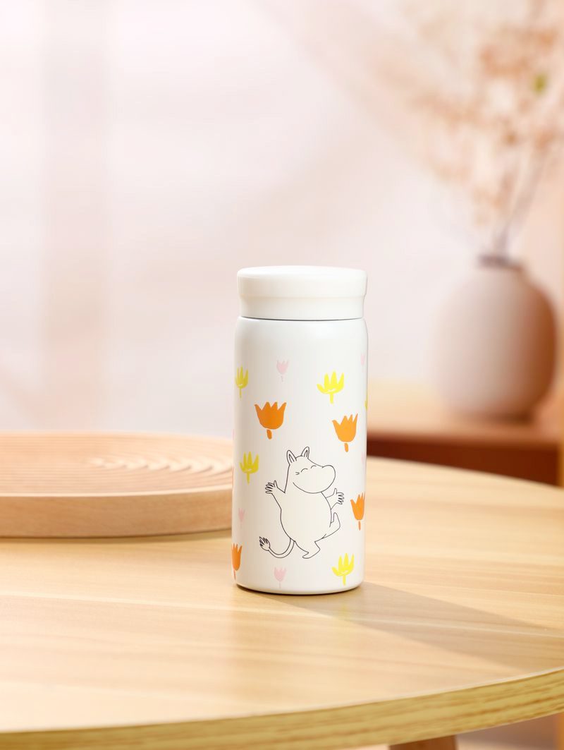 בקבוק/ תרמוס עם איורים מתוקים מעמק המומינים הנפלא, בעיצוב פרשי וצעיר עם טאצ’ נוסטלגי ותמים.
