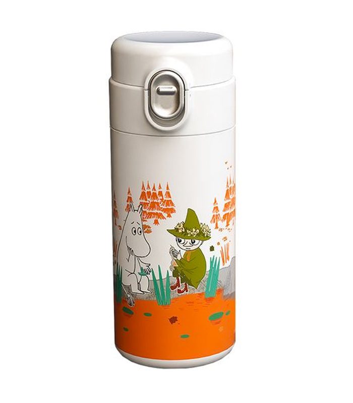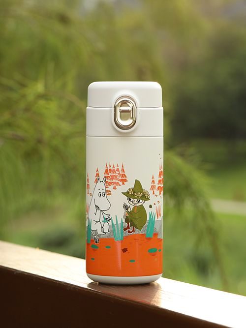 בקבוק/ תרמוס עם איורים מתוקים מעמק המומינים הנפלא, בעיצוב פרשי וצעיר עם טאצ’ נוסטלגי ותמים.
