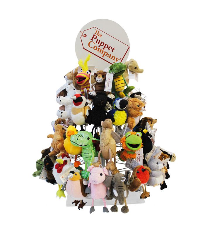 מעמד תצוגה מסתובב של בובות אצבע בצורת פירמידה.
