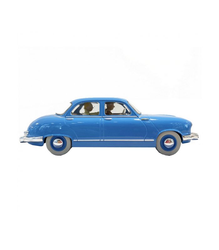 מכונית אייקונית עשויה כרום ורזין ובתוכה דמויות מקולקציית האספנות של Editions Moulinsart שבה דגמים שנבחרו בקפידה מתוך מסעות טין טין.