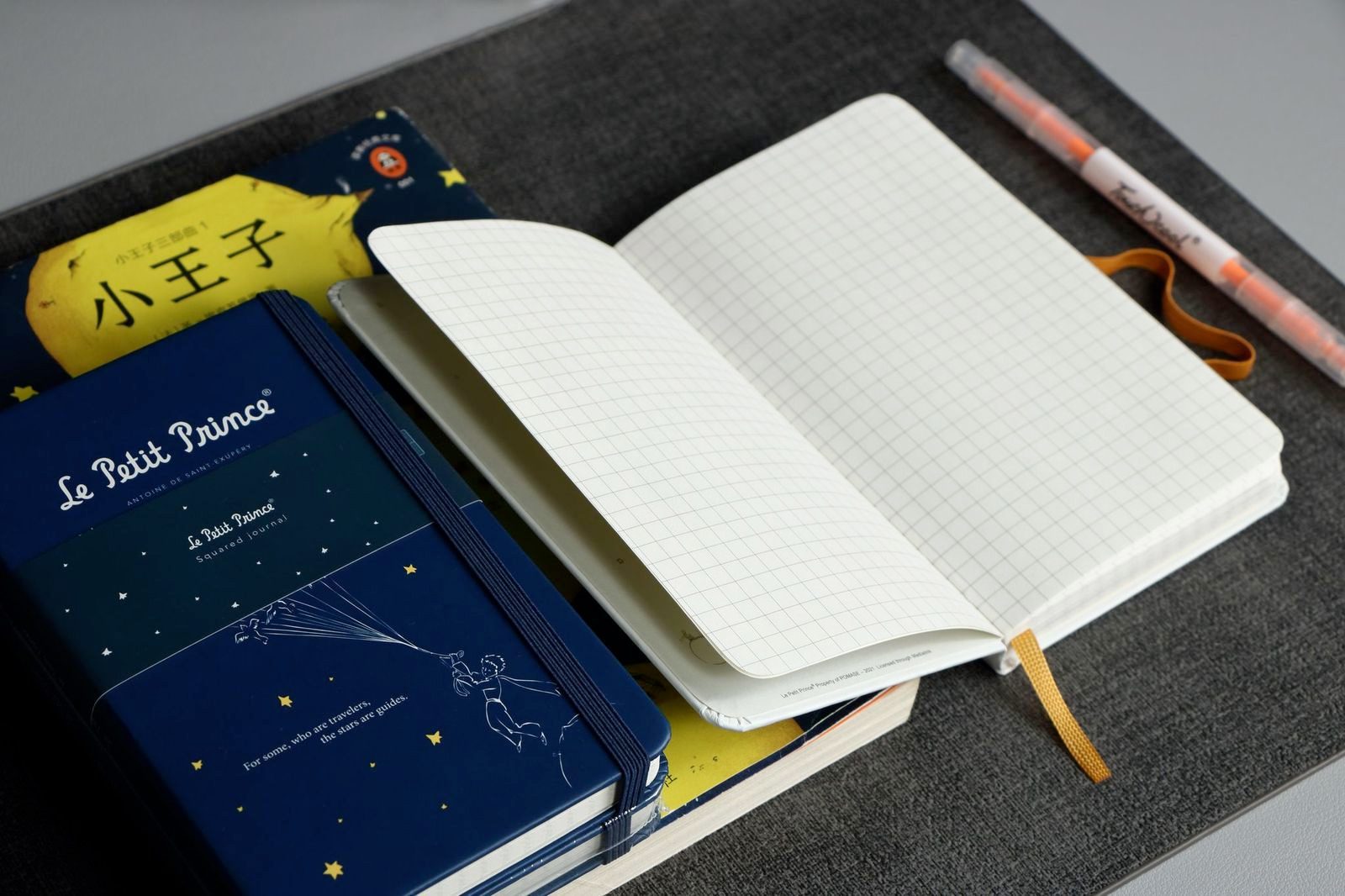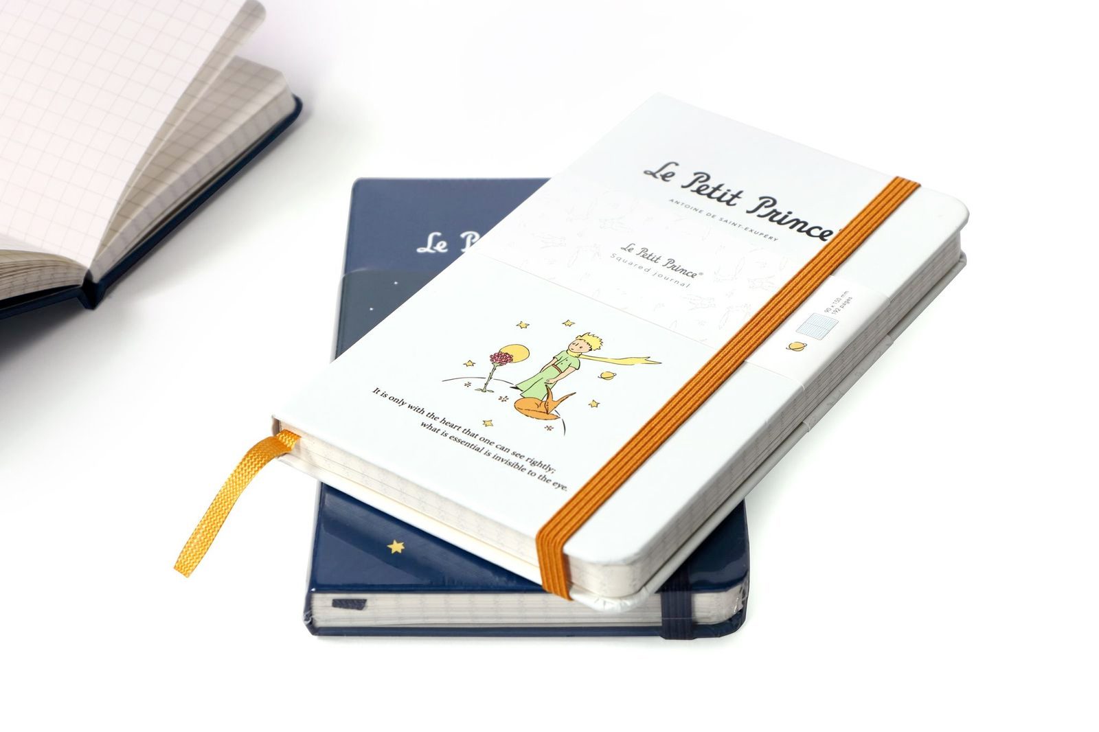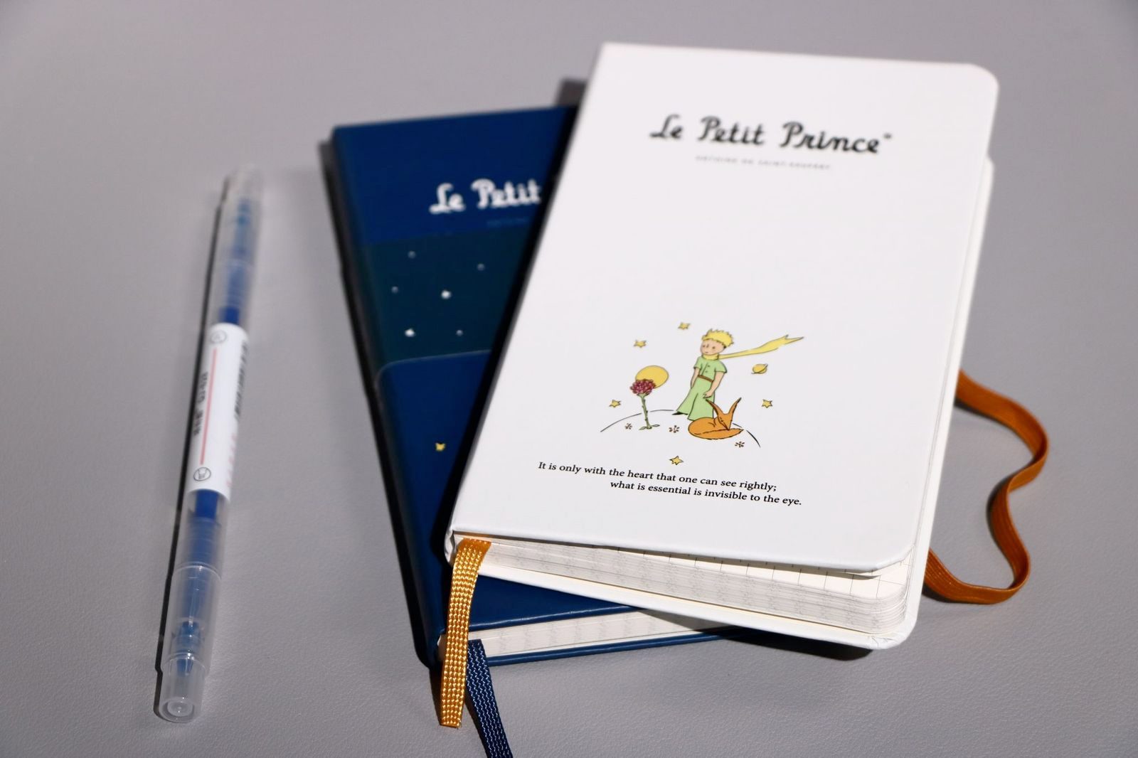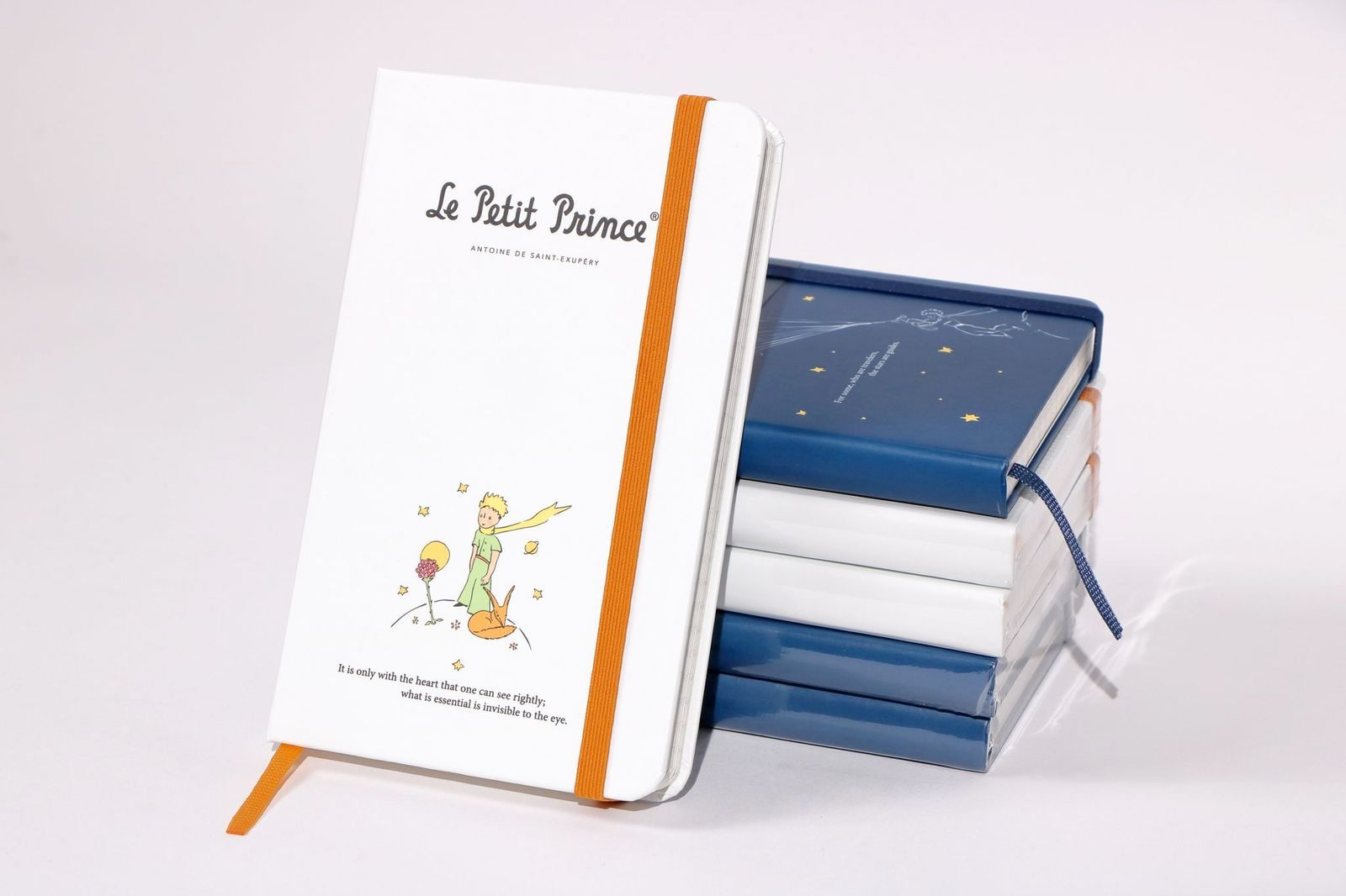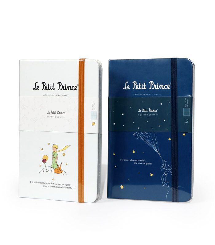 מחברת יפיפיה בכריכה עבה בצבע כחול, עם איור מקורי מתוך “הנסיך הקטן” מאת הסופר הצרפתי אנטואן דה סנט-אכזופרי.