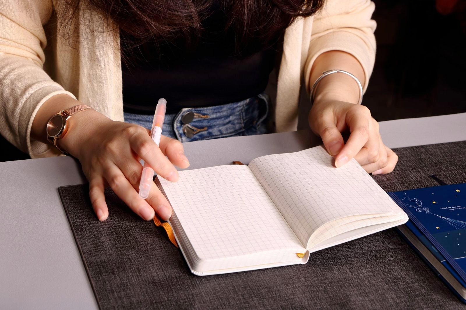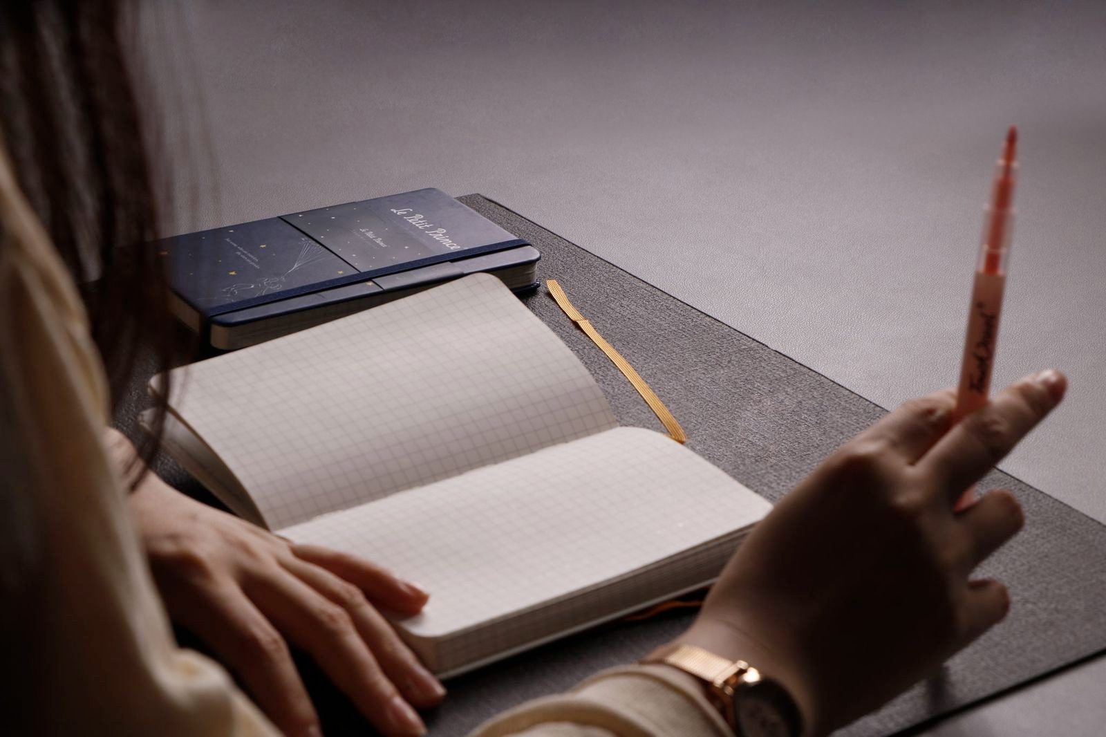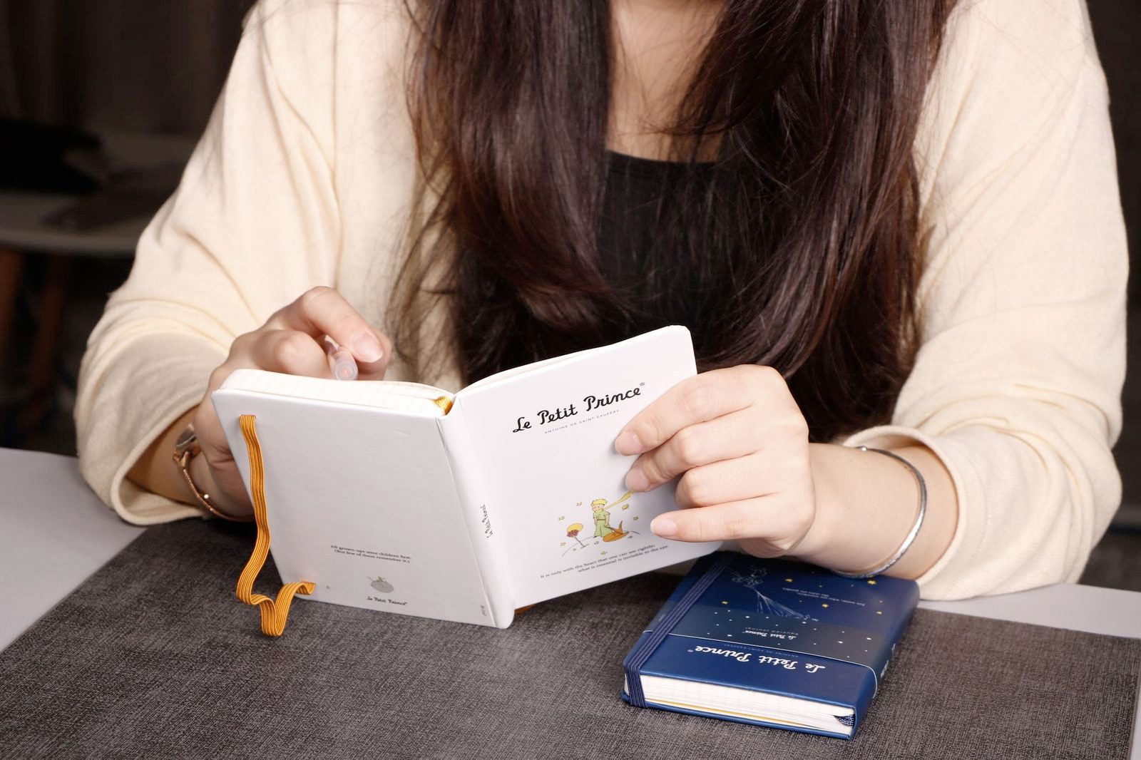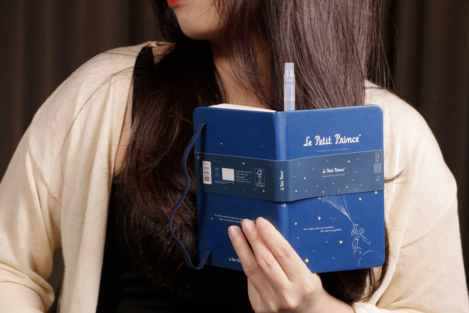 מחברת יפיפיה בכריכה עבה בצבע כחול, עם איור מקורי מתוך “הנסיך הקטן” מאת הסופר הצרפתי אנטואן דה סנט-אכזופרי.