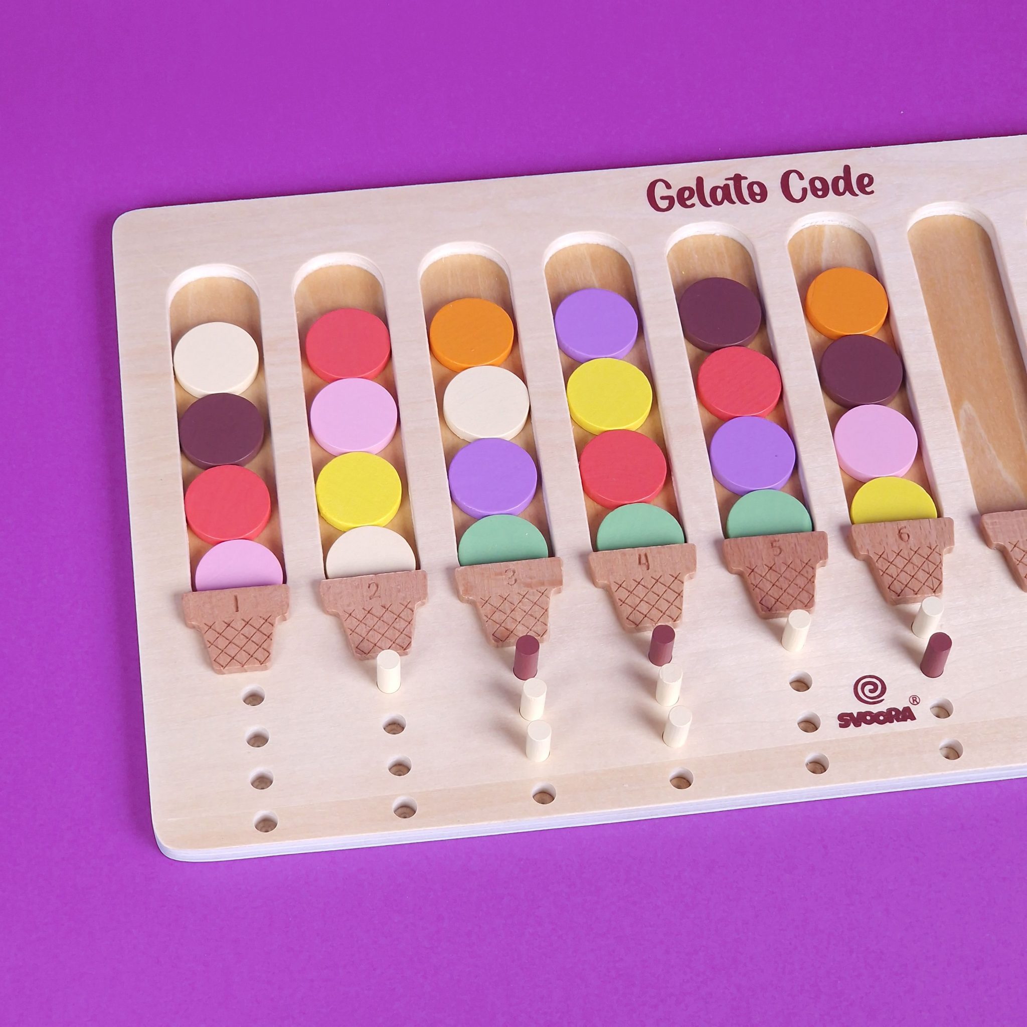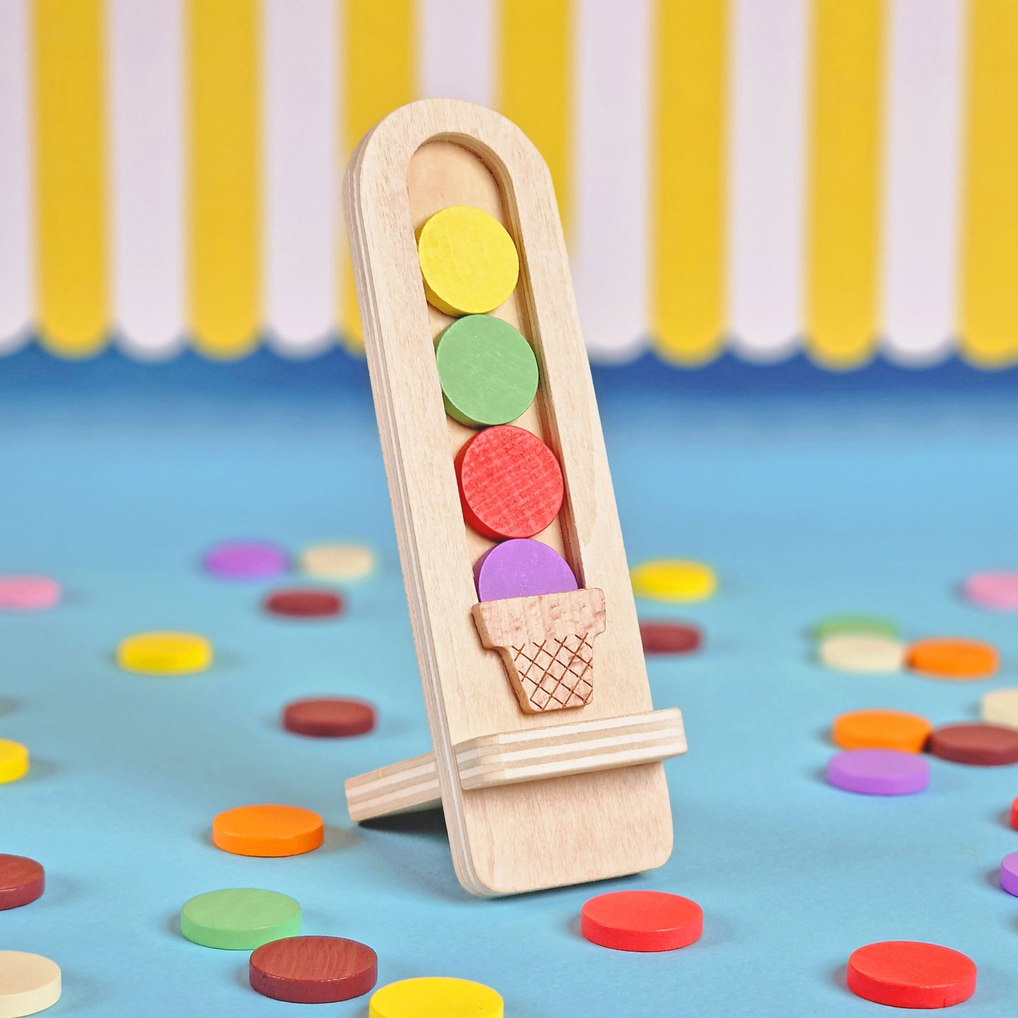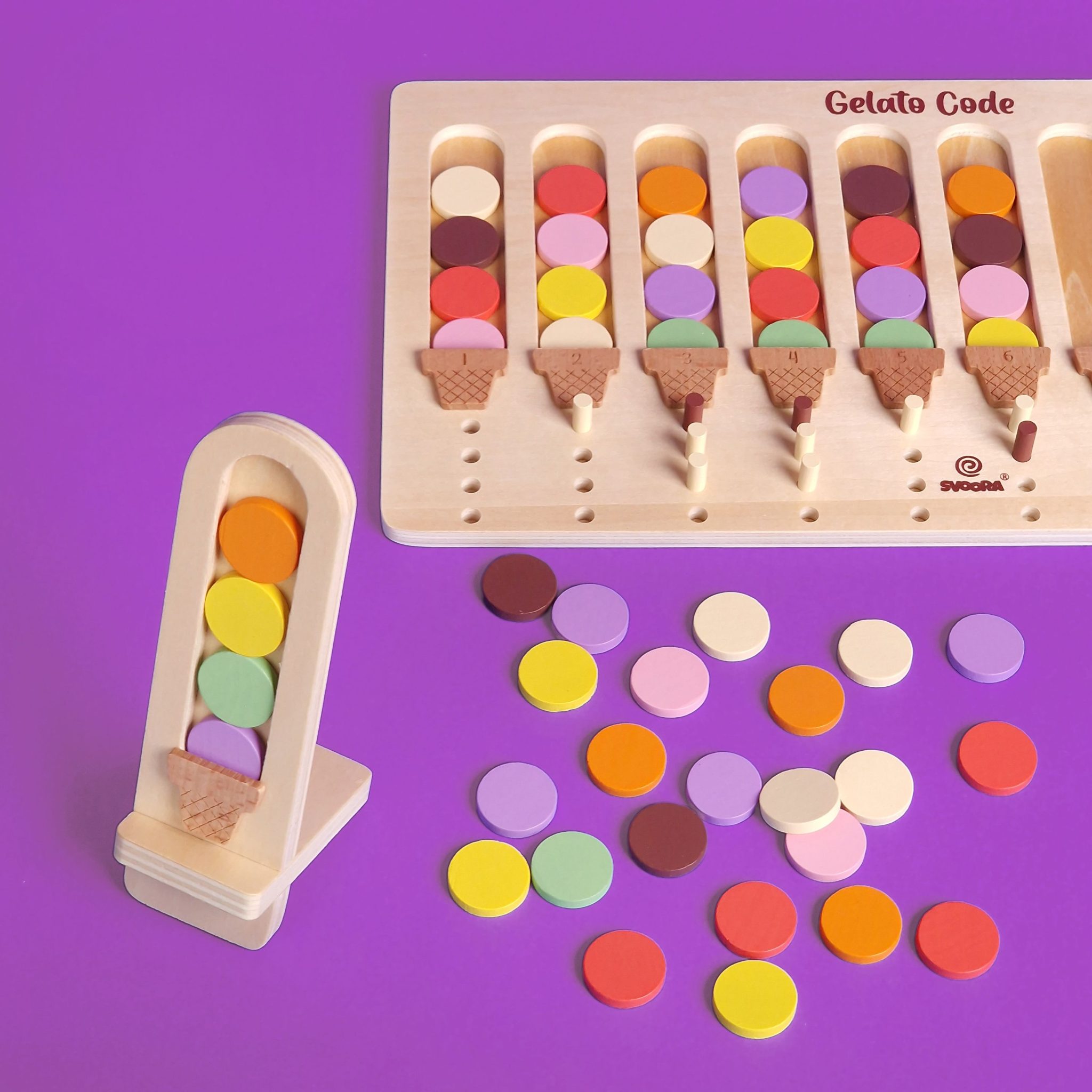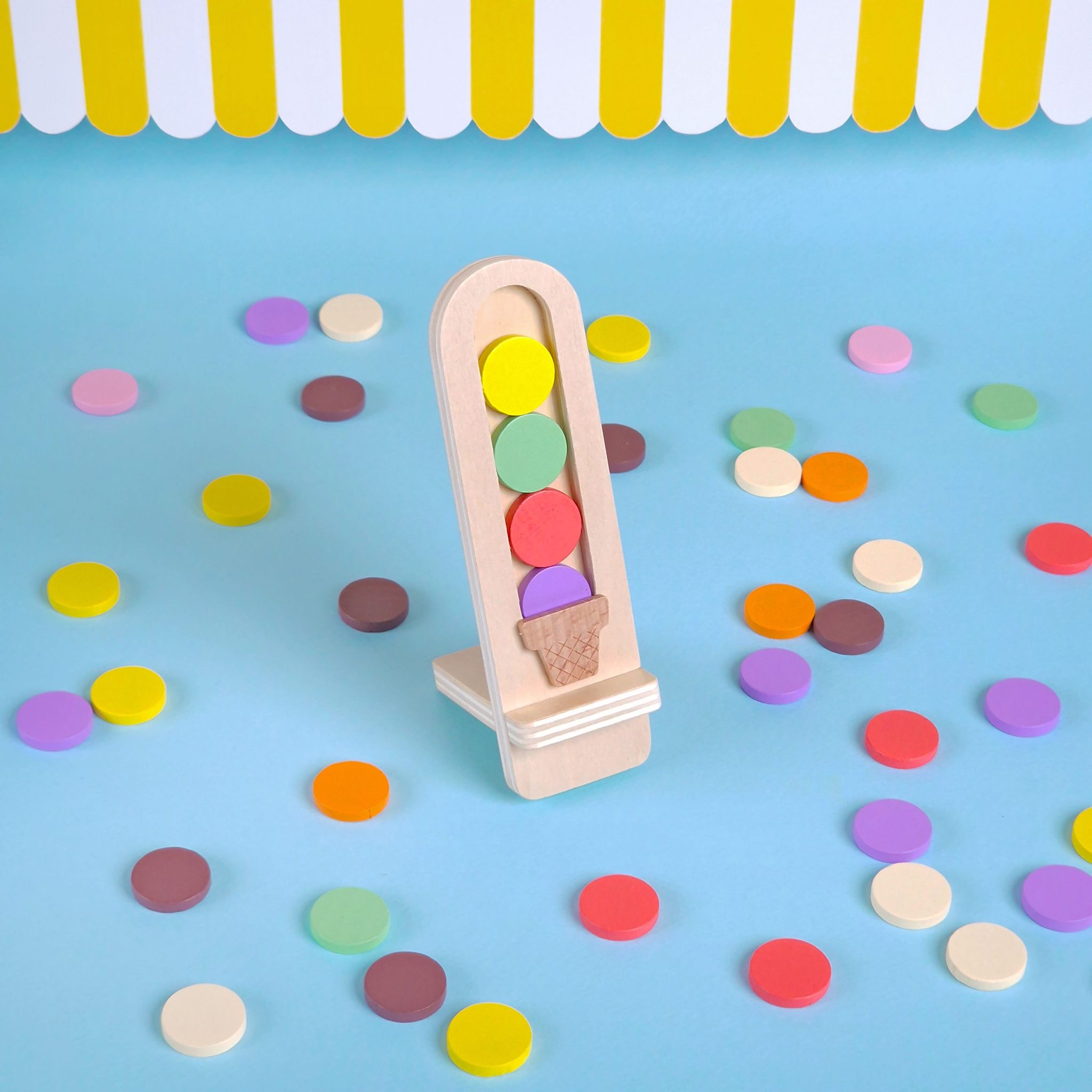 משחק מעוצב מעץ לשני שחקנים בסגנון “בול פגיעה” רק מתוק יותר, כשהמטרה היא לנחש את השילוב במינימום ניסיונות ולהפוך לאמן הגלידה האולטימטיבי!