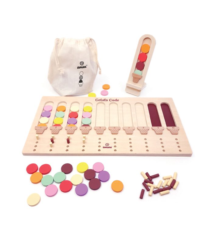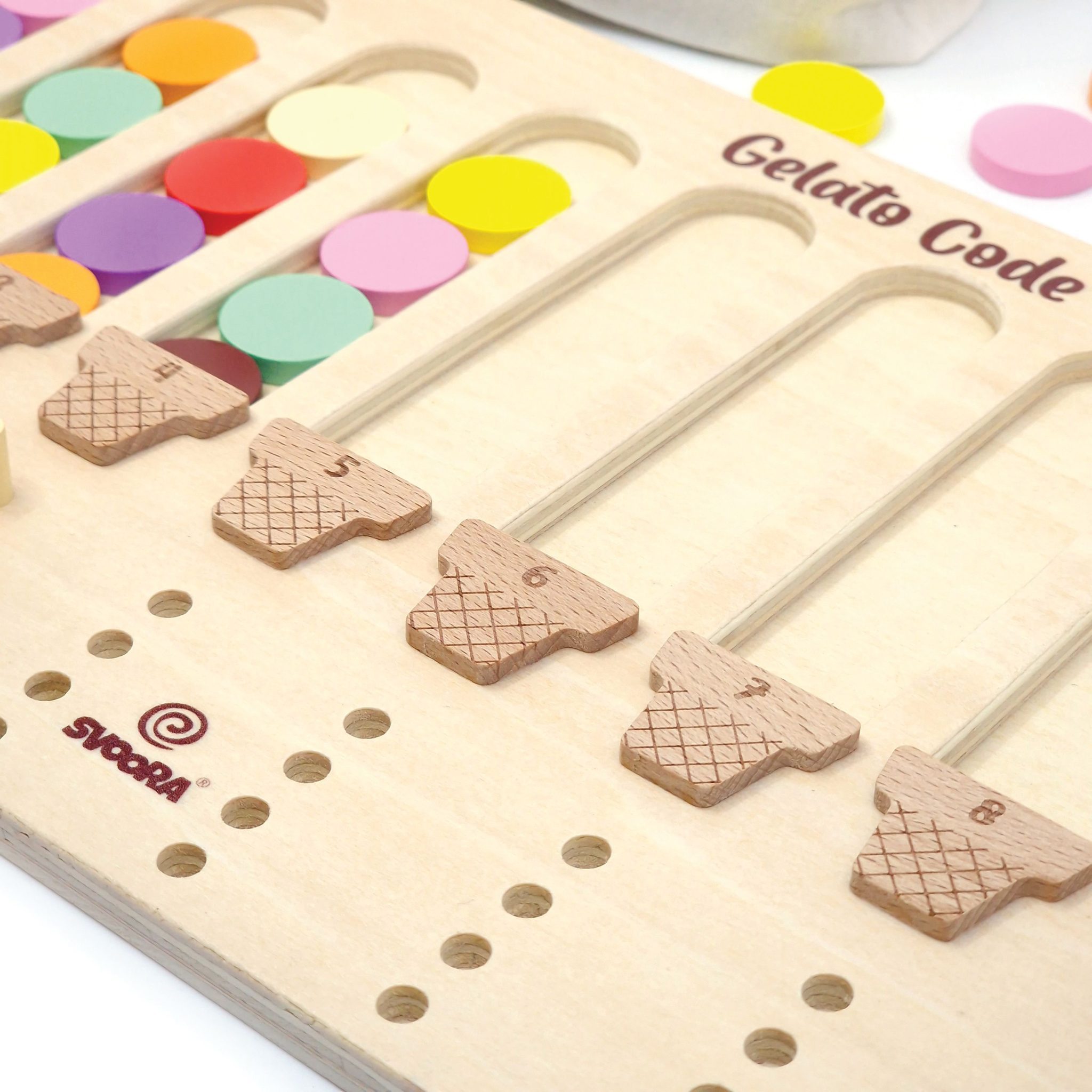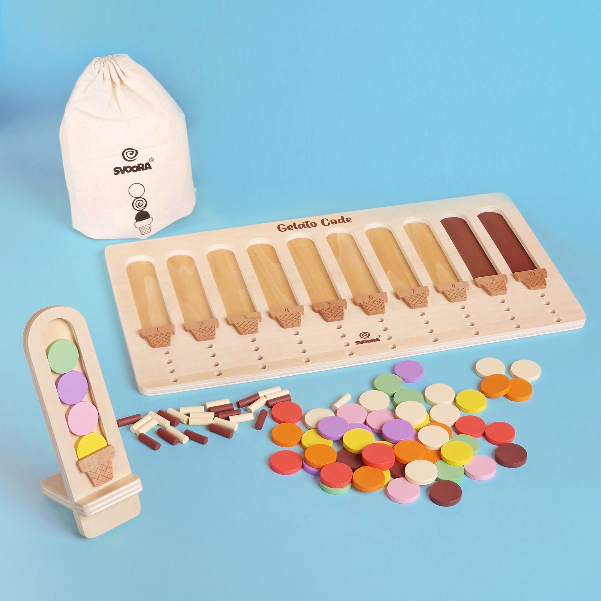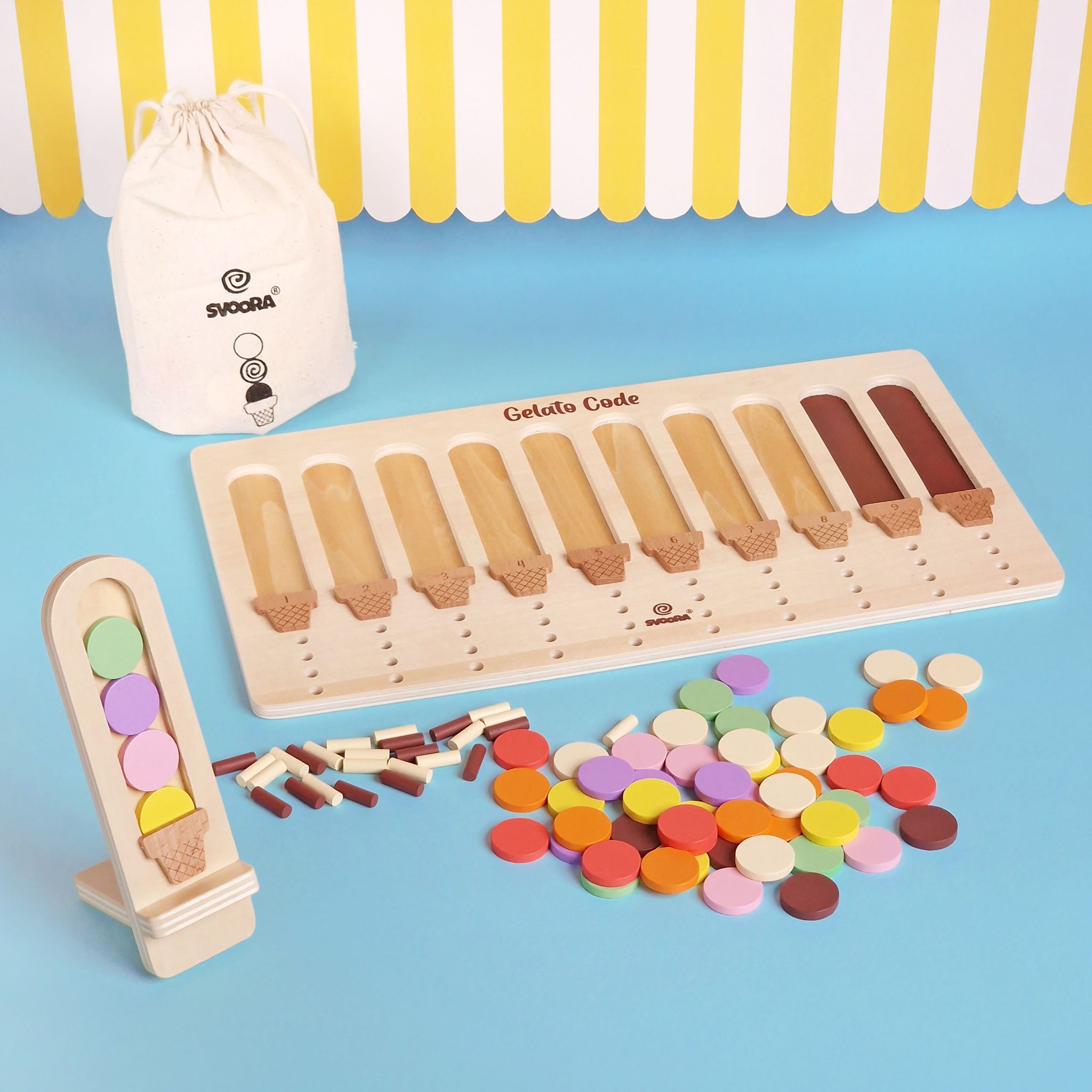 משחק מעוצב מעץ לשני שחקנים בסגנון “בול פגיעה” רק מתוק יותר, כשהמטרה היא לנחש את השילוב במינימום ניסיונות ולהפוך לאמן הגלידה האולטימטיבי!
