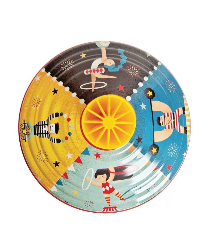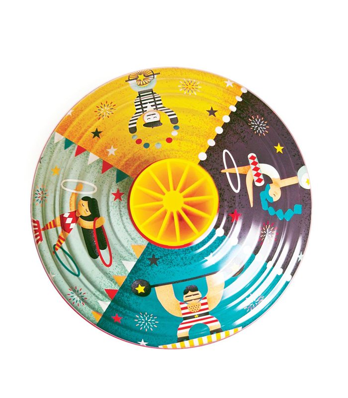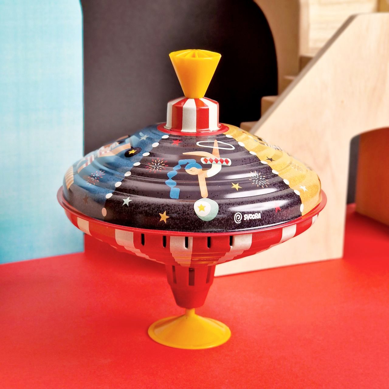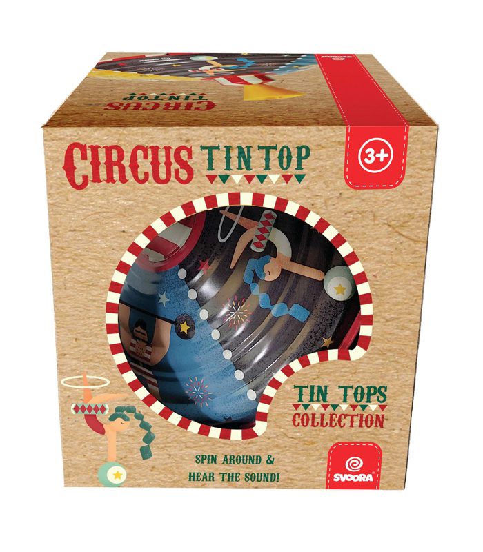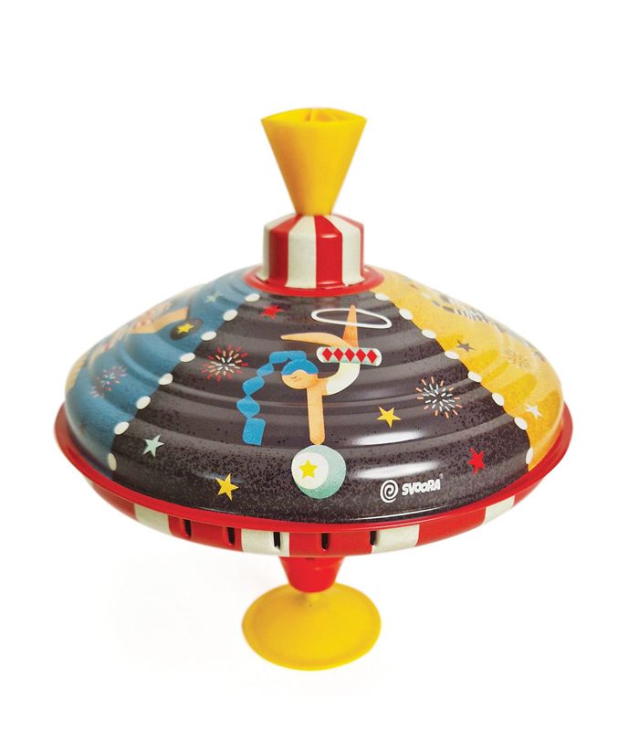 סביבון מיוחד מבית Svoora היוונית, עם איורי קרקס, שגם מפיק סאונד של קרקס. כן יש דבר כזה.