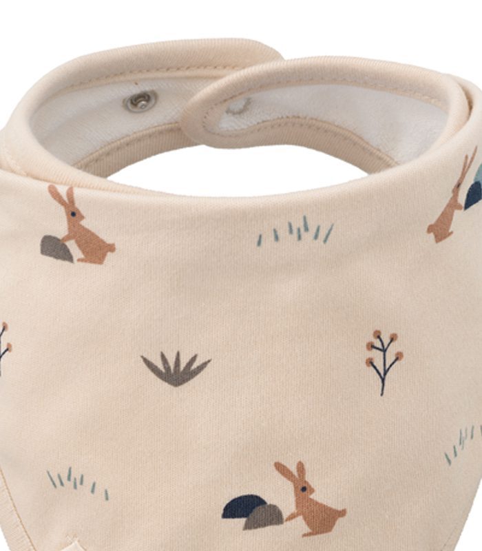 סינר הבנדנה יושב ברכות על עור התינוק כשהוא מרופד בספוג מבפנים, ומצויד בשני כפתורים (חזקים ועמידים למשיכות) להתאמה מושלמת לצוואר הקטן.