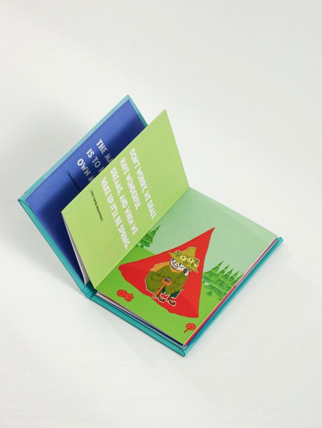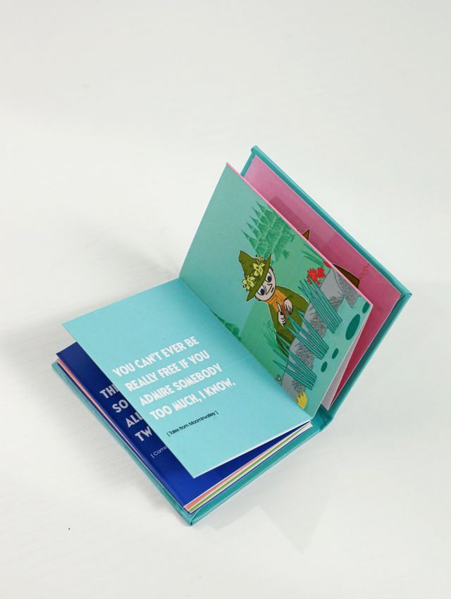 מגנט-סיפרון עם איורים בצבעי מים והציטוטים הקלאסיים והיפים ביותר מתוך סיפורי “המומינים”.