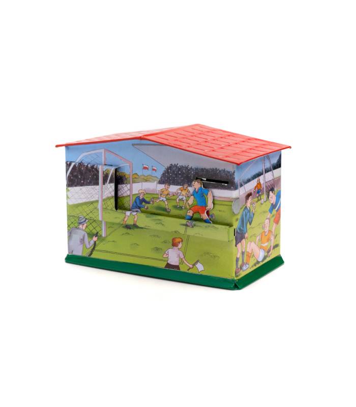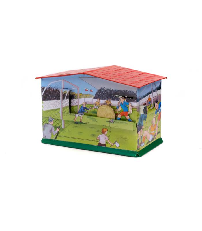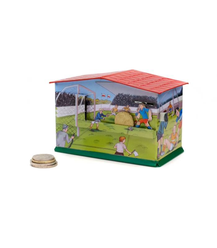 קופת הבנק המיתולוגית עשויה פח בעיצוב נוסטלגי של מגרש כדורגל מבית טין טרז’ר (TIN TREASURES)