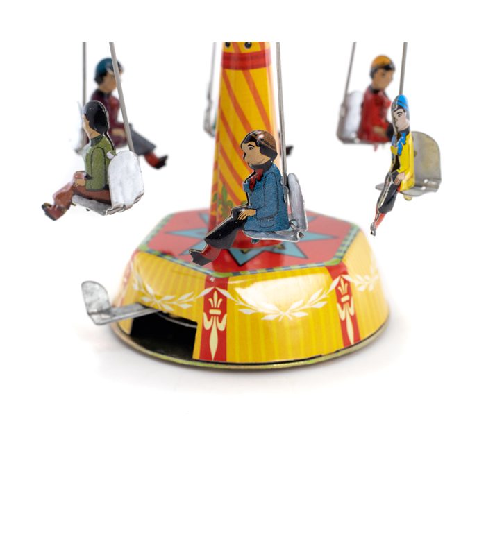 פריט אספנות ואלמנט עיצובי שיראה נפלא על המדף בכל פינה בבית, במשרד ושהוא גם צעצוע וינטג’ מכני עם מנגנון נמתח של פעם, פשוט מושכים לאחור את הידית ורואים איך הקרוסלה מסתובבת!