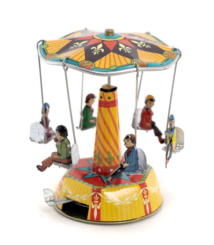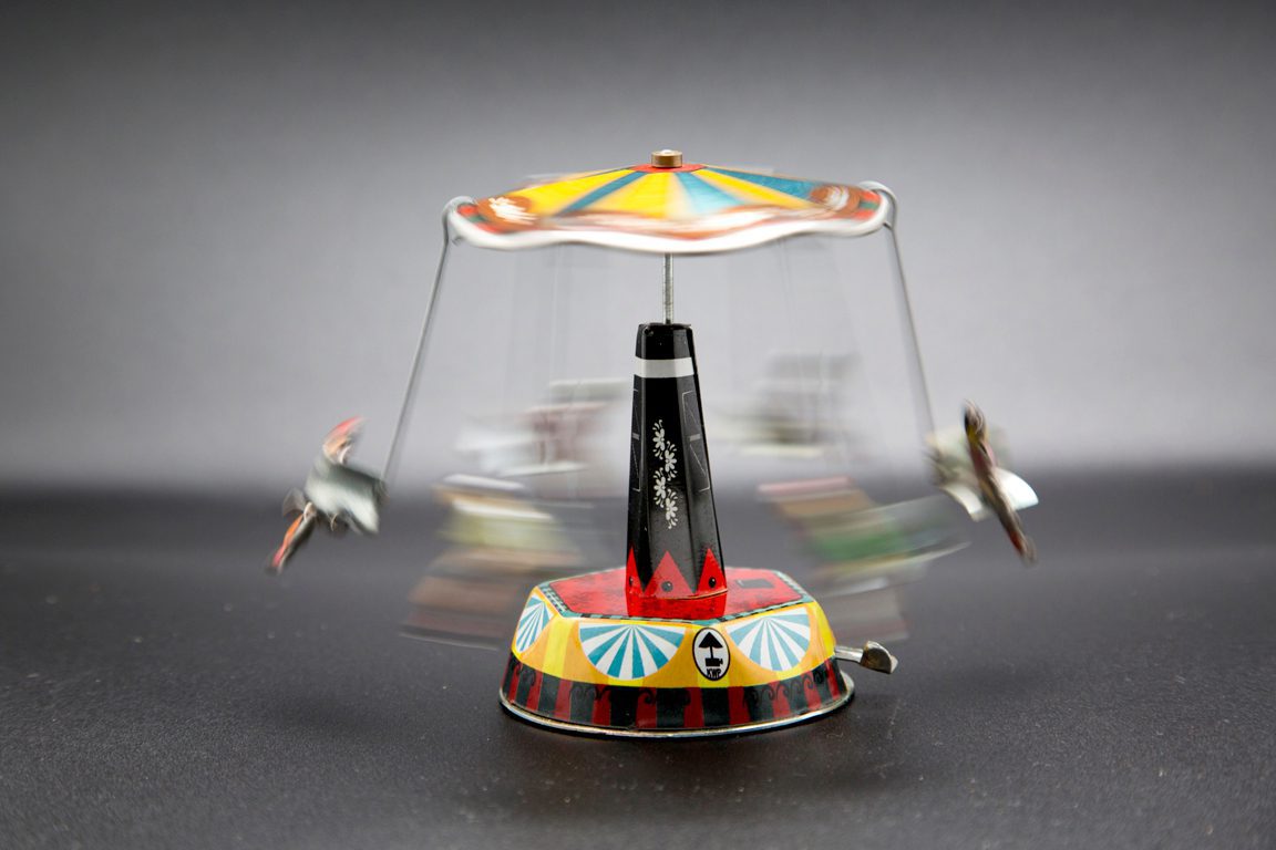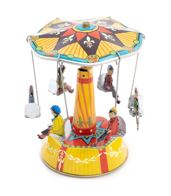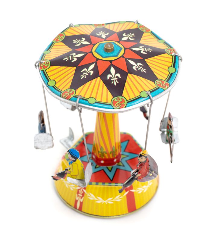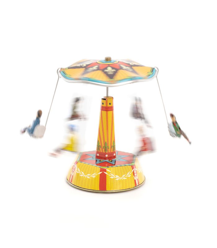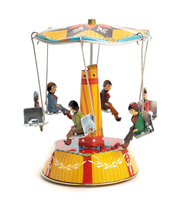 פריט אספנות ואלמנט עיצובי שיראה נפלא על המדף בכל פינה בבית, במשרד ושהוא גם צעצוע וינטג’ מכני עם מנגנון נמתח של פעם, פשוט מושכים לאחור את הידית ורואים איך הקרוסלה מסתובבת!