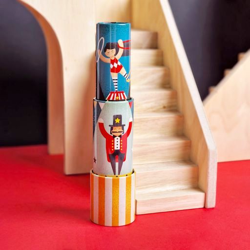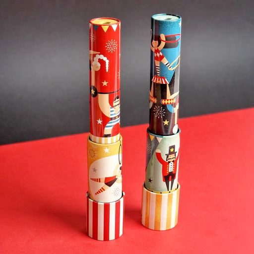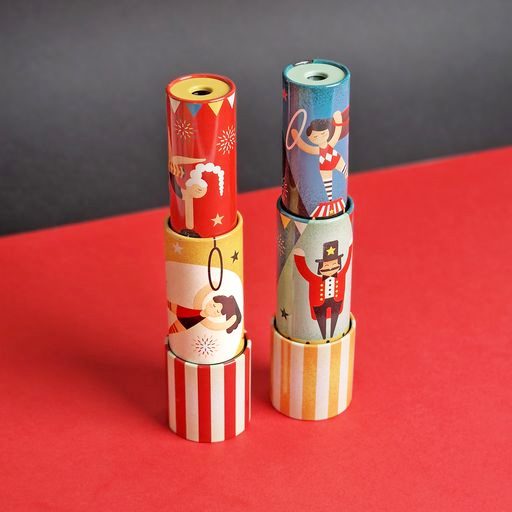גלו עולם של אשליות אופטיות מרתקות עם הקליידוסקופ הטלסקופי עשוי פח צבעוני בהשראת הקרקס המשוגע!