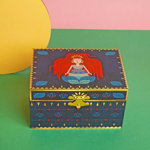 תיבת נגינה בעיצוב רומנטי וייחודי, מעוטרת בדיטיילס מוזהבים שהיא גם קופסת תכשיטים עם מקום לכל מה שחשוב, טבעות, צמידים ושרשראות אהובות.