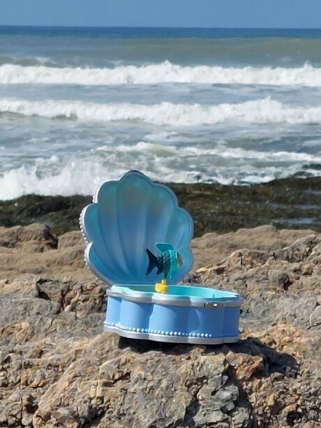 לאחר סיבוב המפתח, פותחים את המכסה ומתגלה דג זהב יפיפיה, שמתנועע ומסתובב לצלילי המנגינה הנפלאה “היפהפייה הנרדמת” של צ’ייכובסקי.