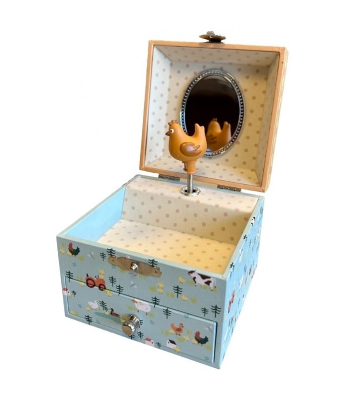 מסובבים את המפתח, פותחים לאט את תיבת התכשיטים המוסיקלית, התרנגול יעניק לכם רגע מיוחד עם ריקוד חמוד, לצלילי מוסיקה שתסחוף אתכם לעולמות רחוקים ומתוקים.
