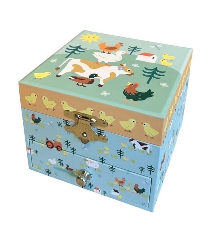 התיבה בעיצוב מיוחד עם עיטורים עדינים של החיים בחווה, והיא גם קופסת אחסון מלאת קסם עם מקום לכל מה שחשוב, טבעות, צמידים ושרשראות אהובות, כשאת האוצרות הקטנים ביותר אפשר לשמור במגירה שלה.