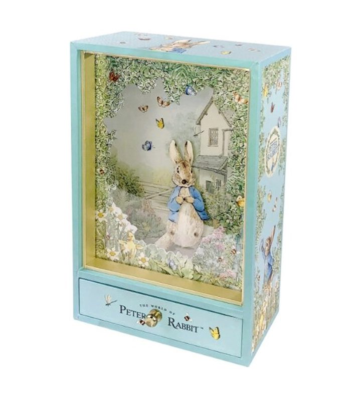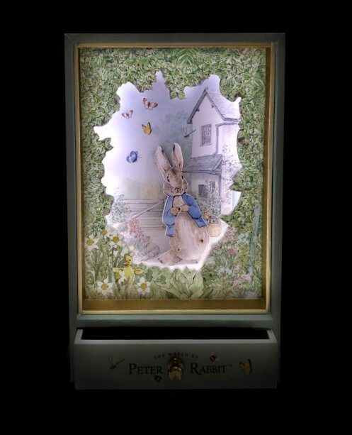מסובבים את המפתח בצד האחורי של הקופסה, ואז פותחים את המגירה, האור יידלק, פיטר הארנב יתעורר כקסם לחיים, וירקוד לצלילי המנגינה המתוקה של ויואלדי: “האביב”.