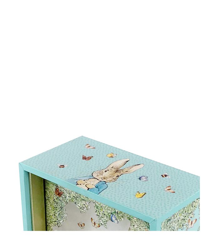 תיבת נגינה מבית טרוסולייר TROUSSELIER הצרפתית בגוון תכלת, בעיצוב פיטר הארנב בגינה מתוקה.