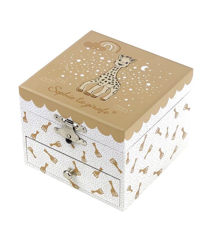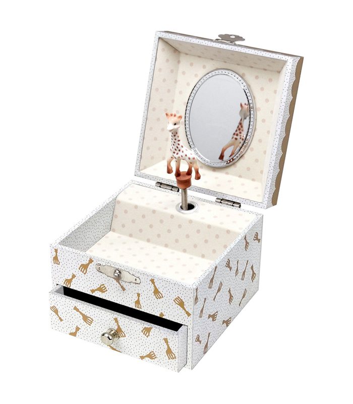 התיבה בעיצוב מיוחד עם עיטורים עדינים של ג’ירפות קטנטנות, והיא גם קופסת אחסון מלאת קסם עם מקום לכל מה שחשוב, טבעות, צמידים ושרשראות אהובות, כשאת האוצרות הקטנים ביותר אפשר לשמור במגירה שלה.