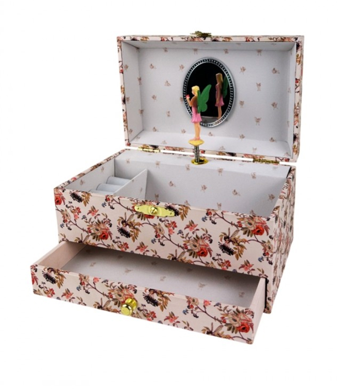 התיבה המעוצבת היא גם קופסת אחסון מלאת קסם עם מקום לכל מה שחשוב, טבעות, צמידים ושרשראות אהובות, כשאת האוצרות הקטנים ביותר אפשר לשמור במגירה שלה.