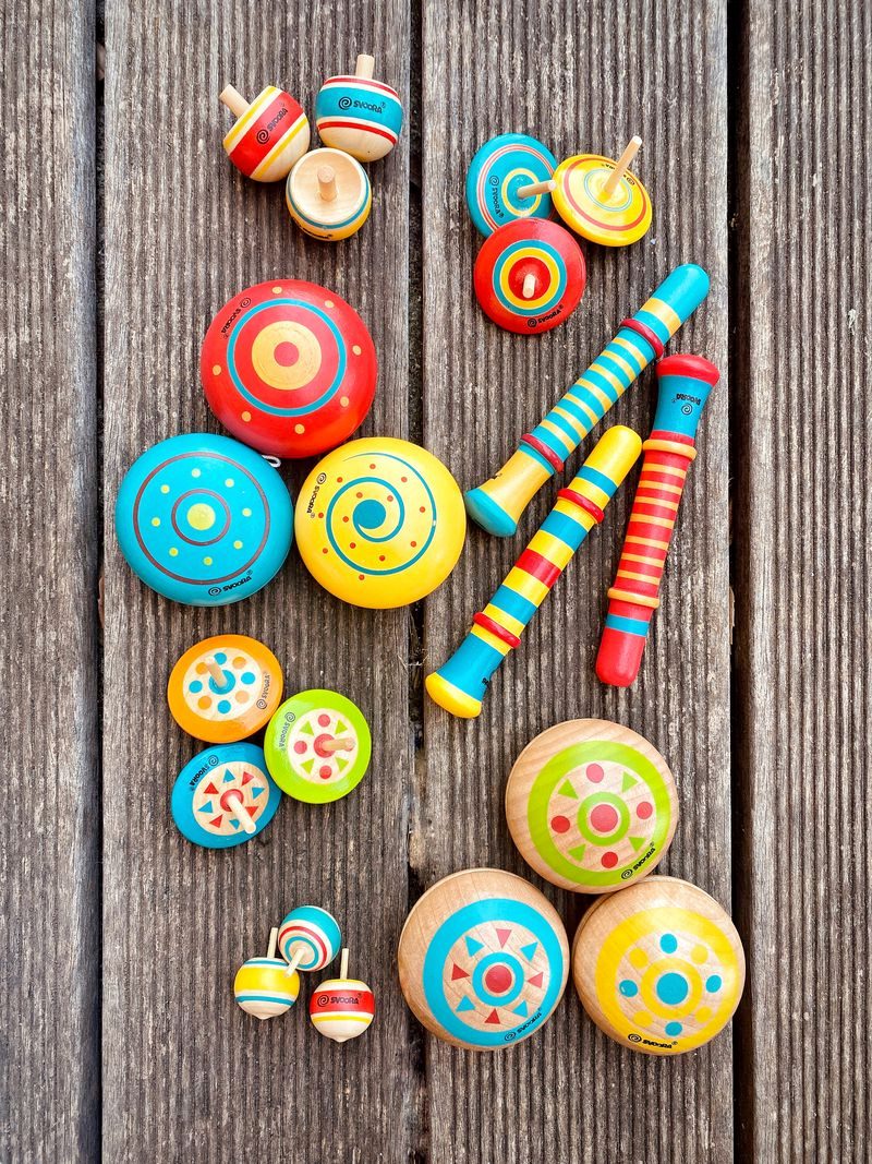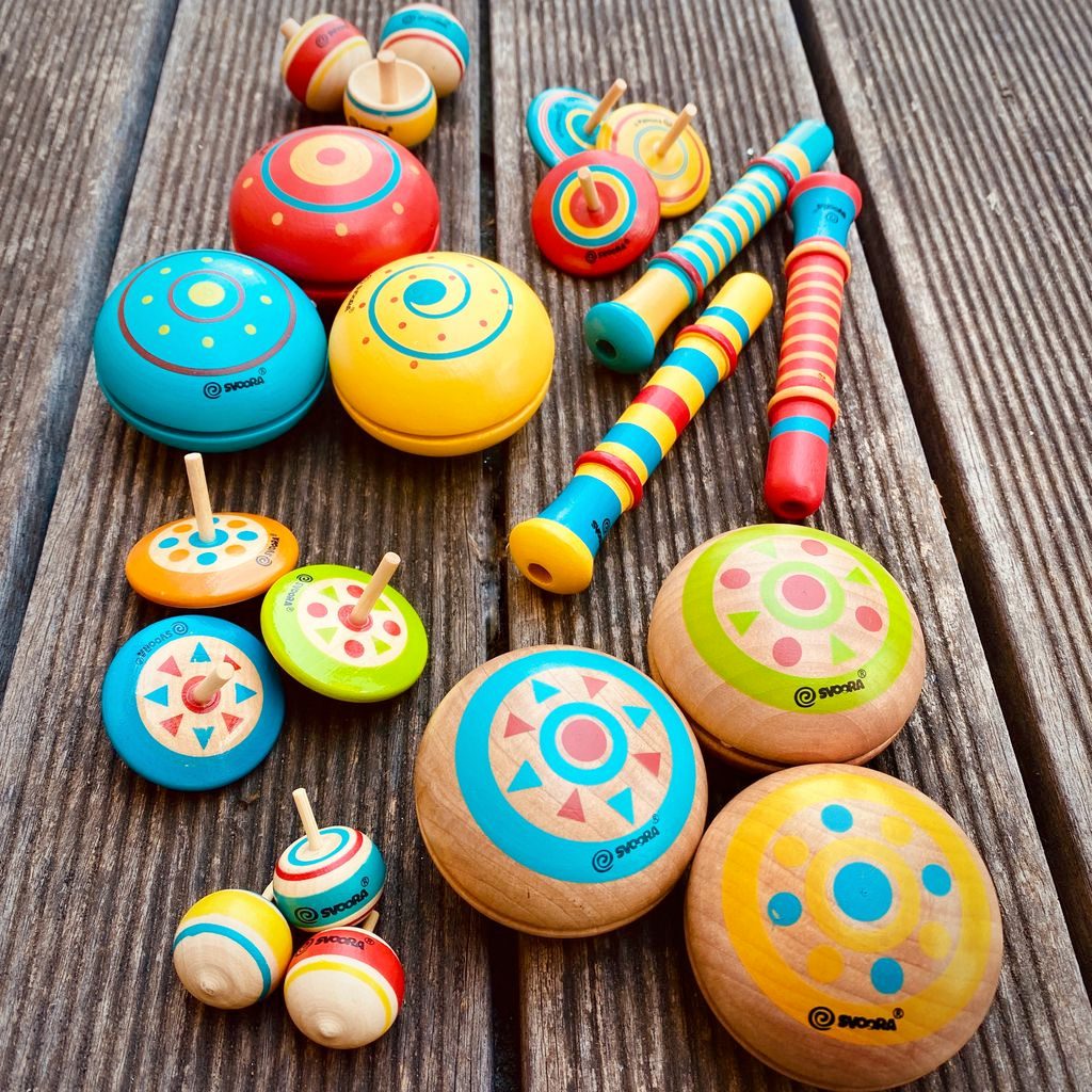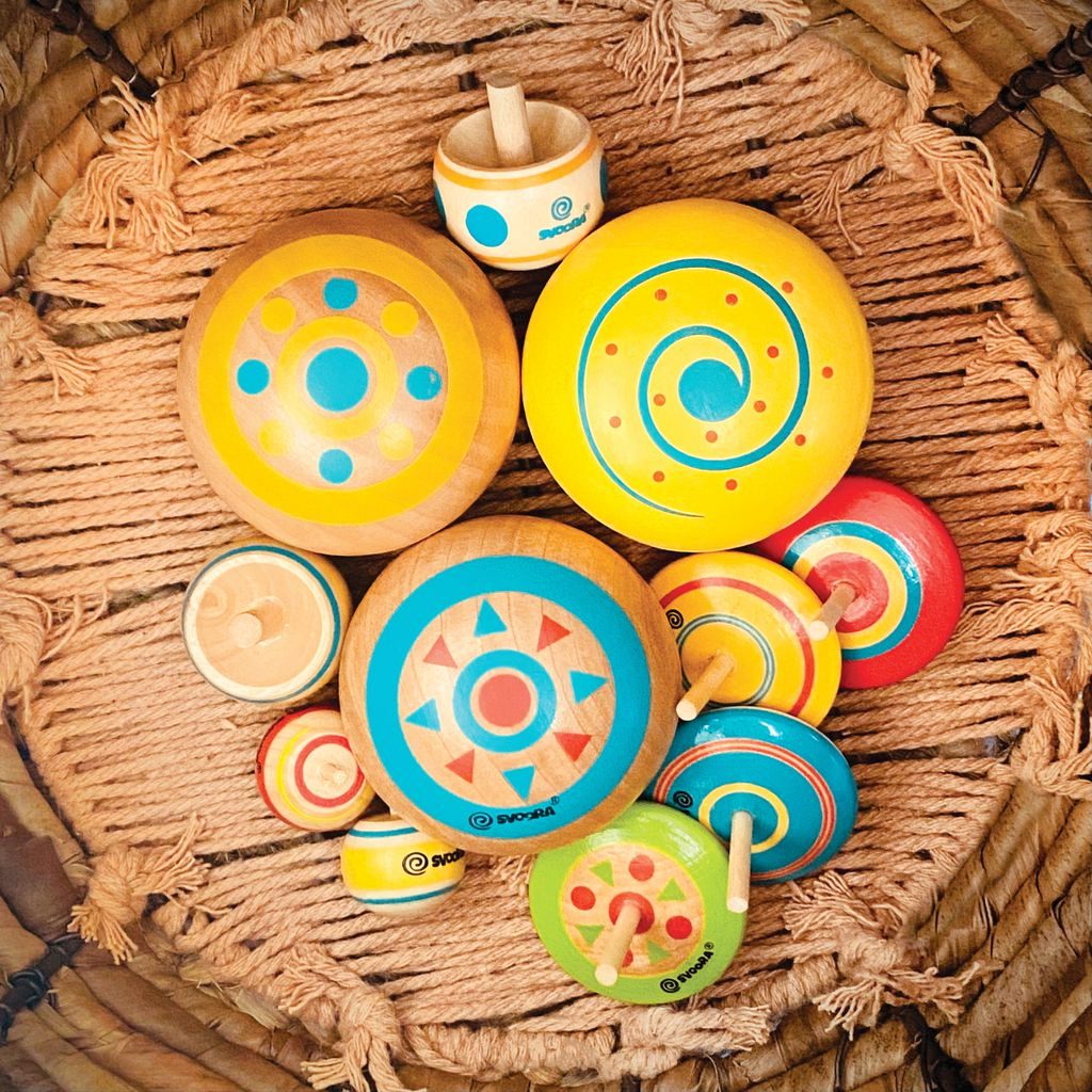 סביבון עץ, בגרסה קלאסית שטוחה וצבעונית, מתוק כמו סוכריה על מקל, מבית Svoora היוונית. 🍭