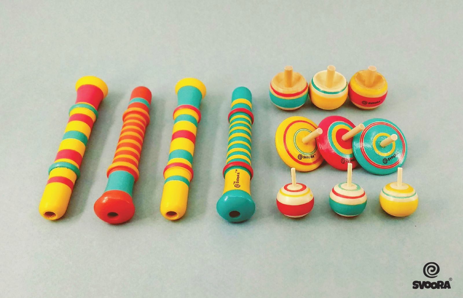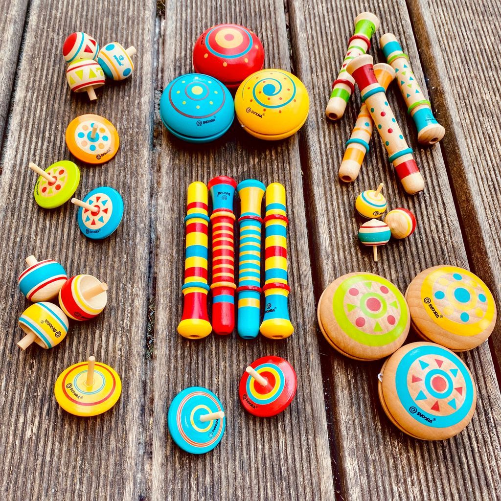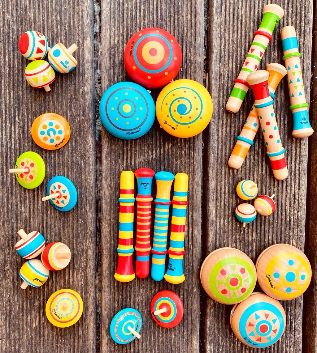 סביבון עץ, בגרסה קלאסית שטוחה וצבעונית, מתוק כמו סוכריה על מקל, מבית Svoora היוונית. 🍭