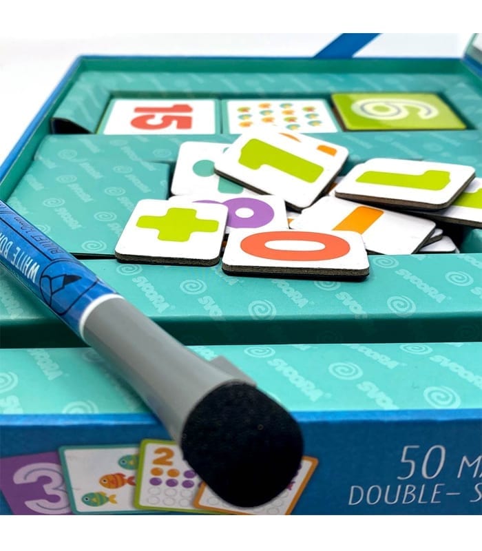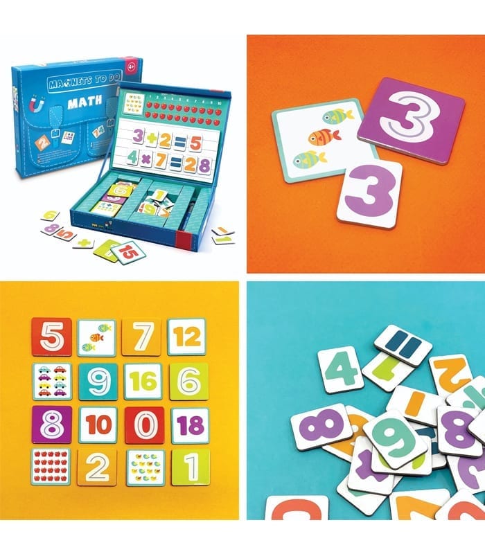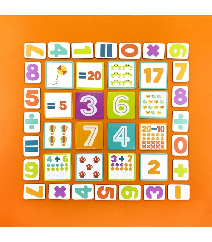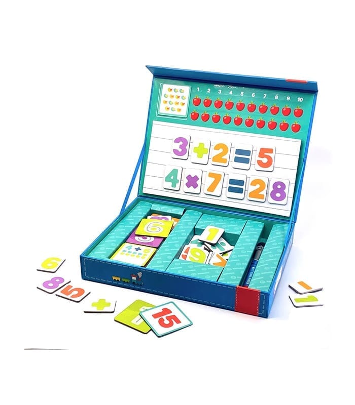 ערכה מגנטית עם מספרים ותמונות המתאימה למגע הראשון של הילד עם מדע החשבון. הכירו את המספרים והסמלים ולמדו את החישובים המספריים הבסיסיים של חיבור וחיסור בעזרת 20 הכרטיסים המגנטיים הדו-צדדיים. באמצעותם, הילד יכול לזהות את המספרים הכתובים כמו גם שפע של משמעויות חדשות דרך התמונות תוך היכרות עם המספרים השונים ומה הם מייצגים. העט המחיק בשילוב השורות על הלוח, מעודדים את הילדים ללמוד את דרך הכתיבה הנכונה של המספרים.
