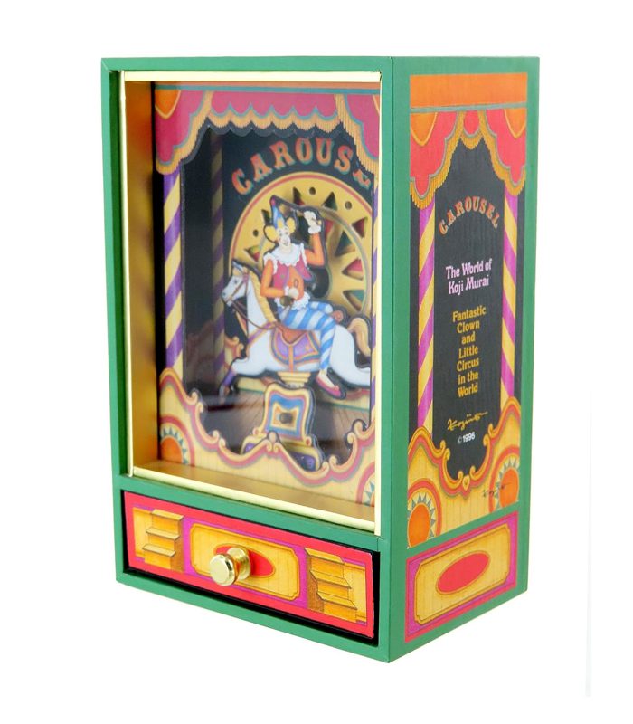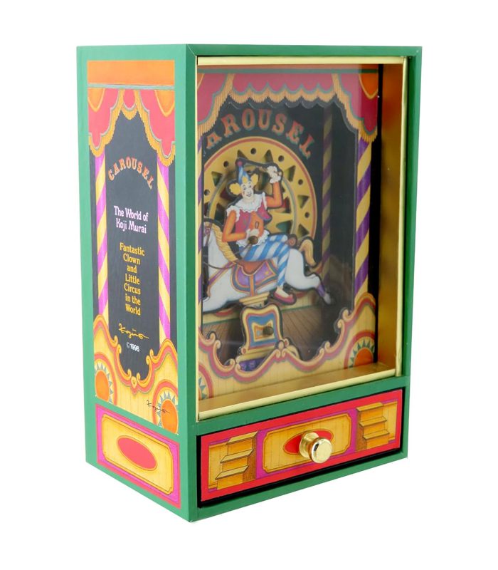 תיבת נגינה מבית טרוסולייר TROUSSELIER הצרפתית בעיצוב קרקס, של האמן היפני קוז’י מוראיי.