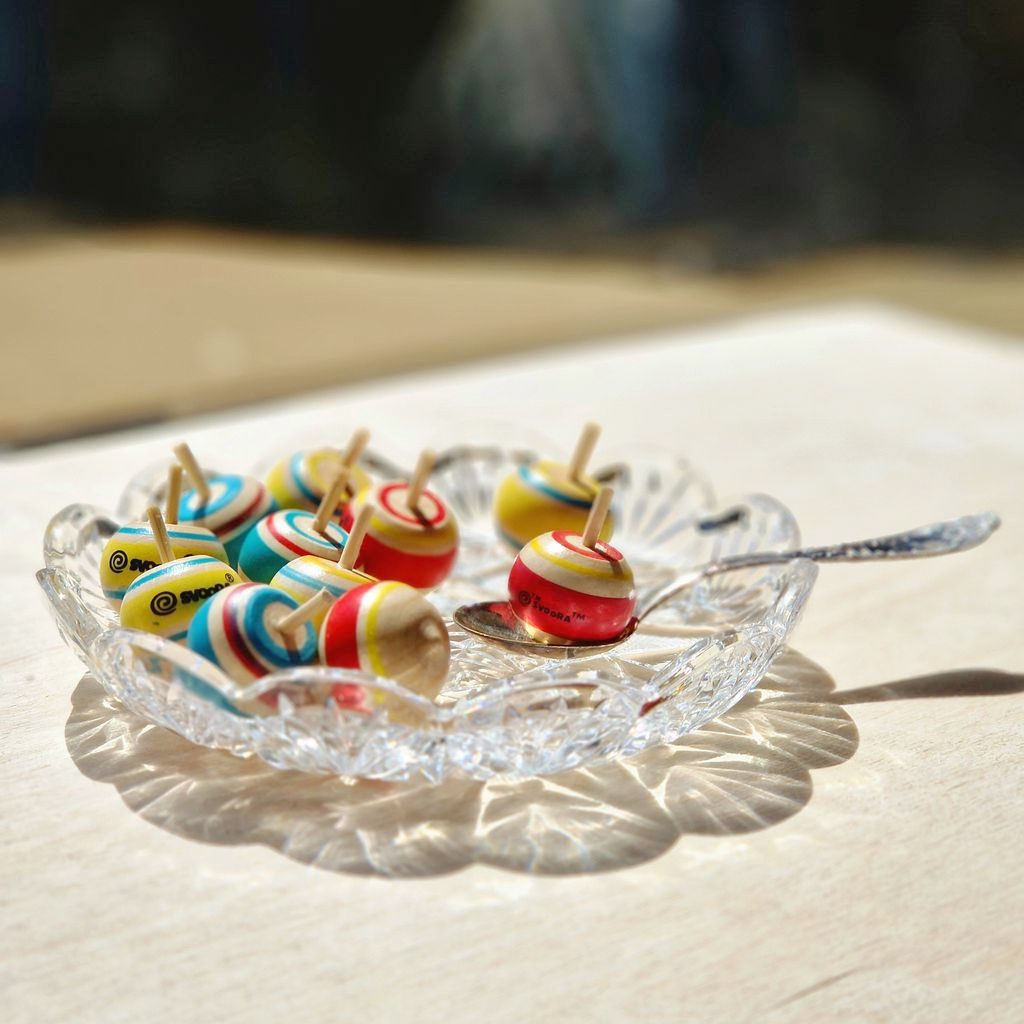 סביבון עגול וצבעוני, מתוק כמו סוכריה על מקל, ומתהפך כשמסובבים אותו! מבית Svoora היוונית. 🍭
