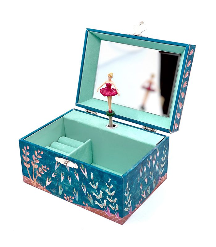 דמיינו איך אתם פותחים לאט את תיבת התכשיטים המוסיקלית, ובכל פעם מחדש, תנו לבלרינה להעניק לכם רגע מיוחד, עם אותו ריקוד אייקוני ומופלא, לצלילי מוסיקה שתסחוף אתכם לעולמות רחוקים ומתוקים.
