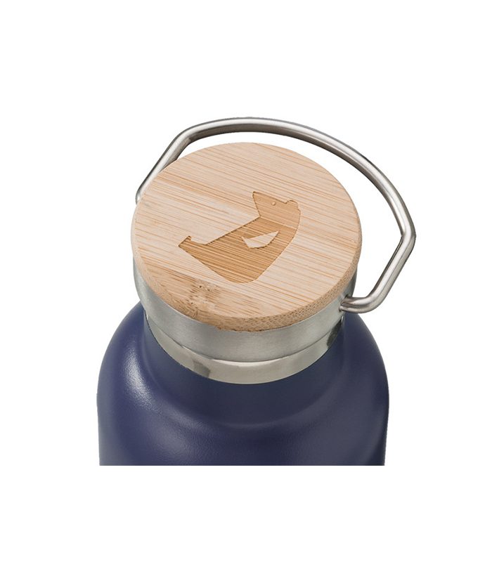 בקבוק 500 מ”ל עשוי מתכת אל-חלד איכותית וכולל 2 פיות שונות לבקבוק (1. סגירת הברגה כתרמוס – מכסה ייחודי המשלב מתכת ועץ 2. עם פקק מתקפל לשתייה)