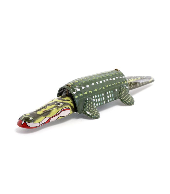 התנין מתנועע בסגנון וינטג’ נדיר הוא צעצוע קלאסי מפח, איטי ויציב ותמיד מעלה חיוך ומזכיר עולמות רחוקים.