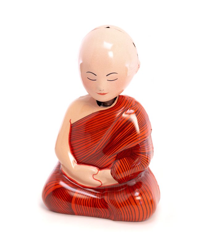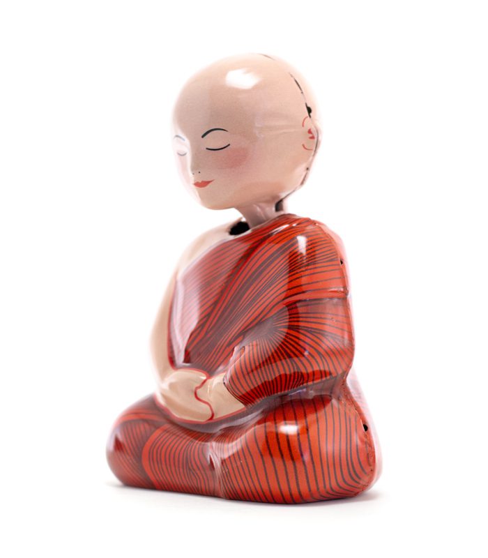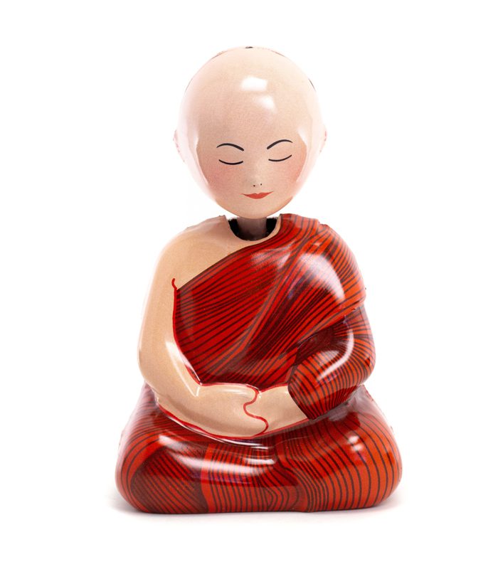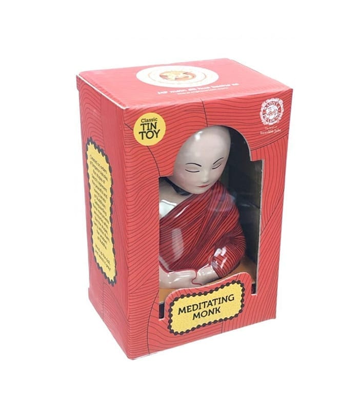 צעצוע פח מקסים מבית Tin Treasure של דמות נזיר בודהיסטי, בעיצוב  “זן” מינימליסטי.
