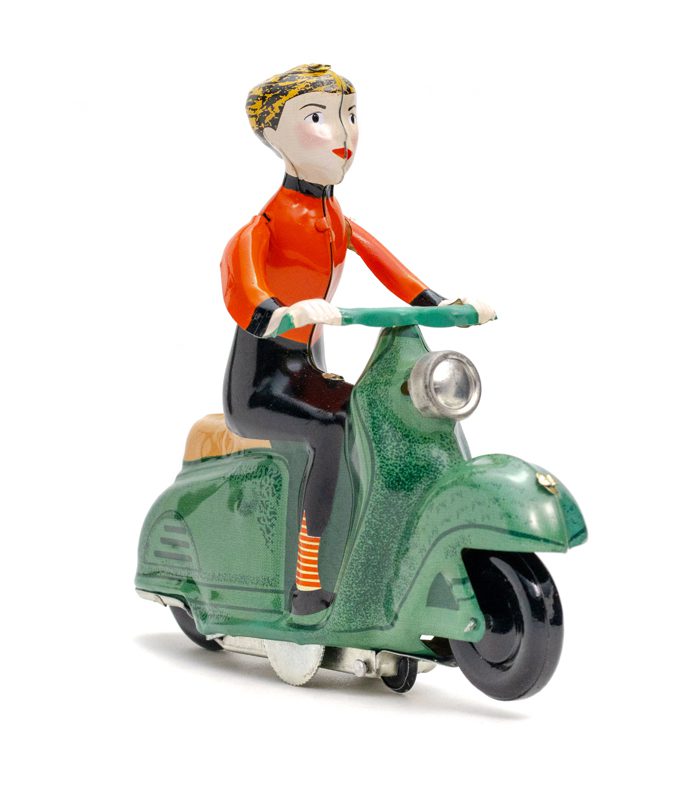 פריט אספנות שהוא לא רק אלמנט עיצובי שישדרג כל מדף ופינה בבית ובמשרד אלא גם צעצוע מכני מקסים, פשוט מסובבים את המפתח ונערת הסקוטר יוצאת לרכיבה המיוחדת שלה!