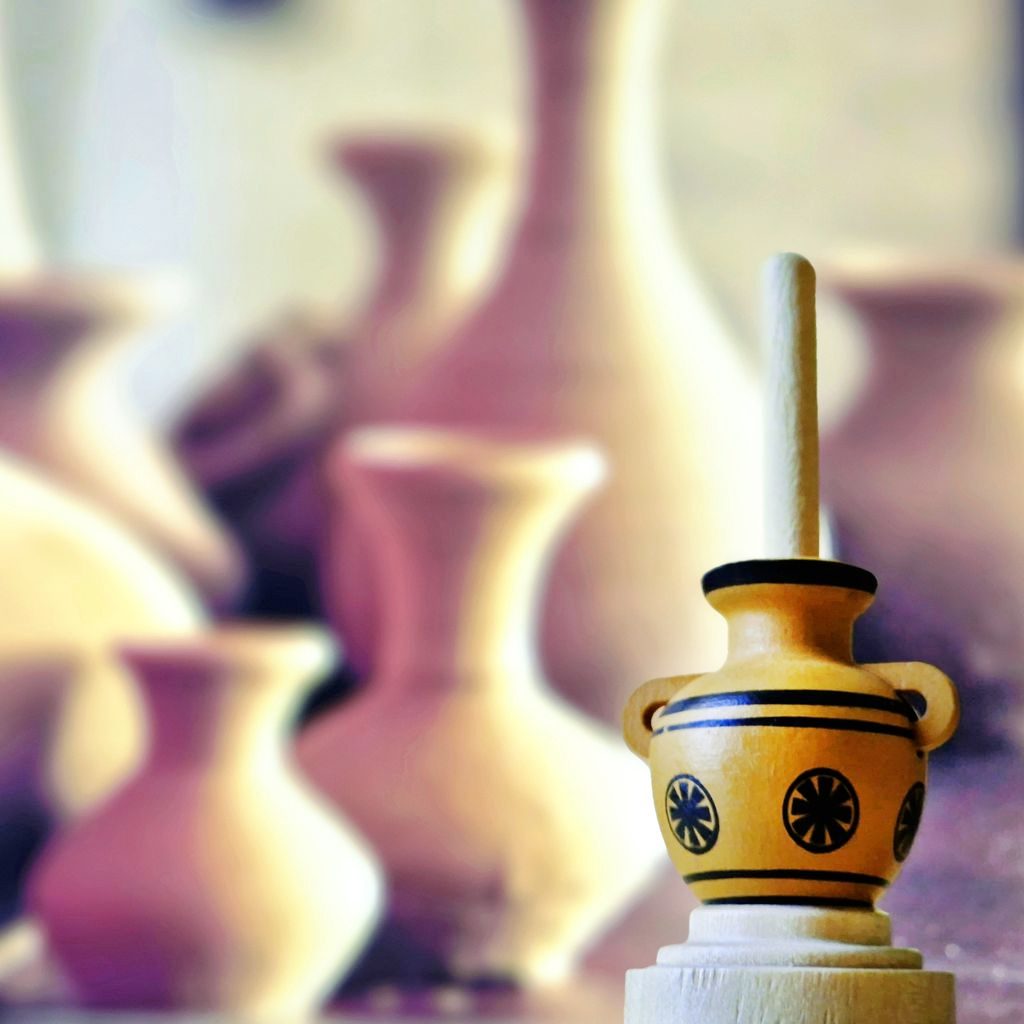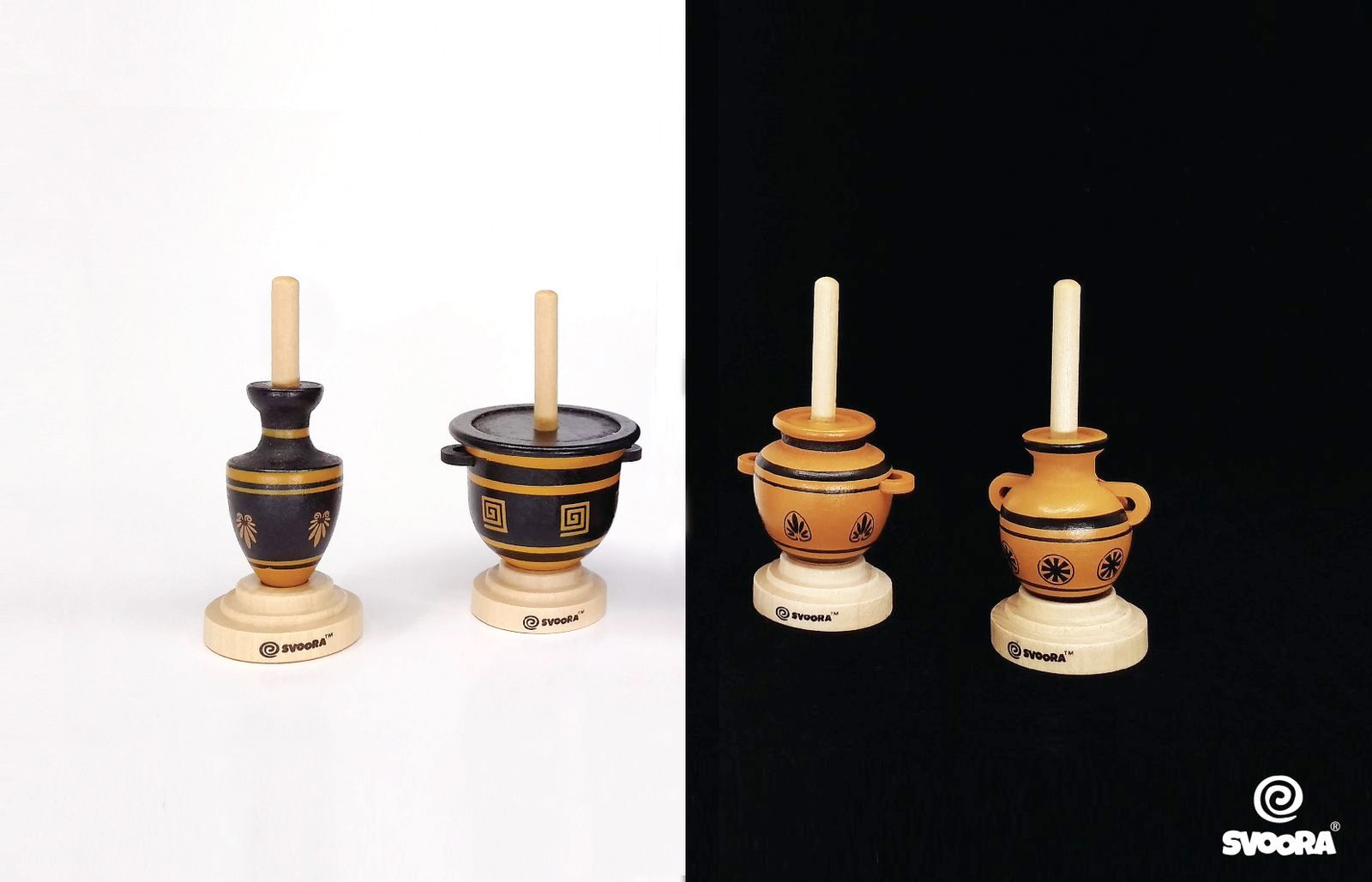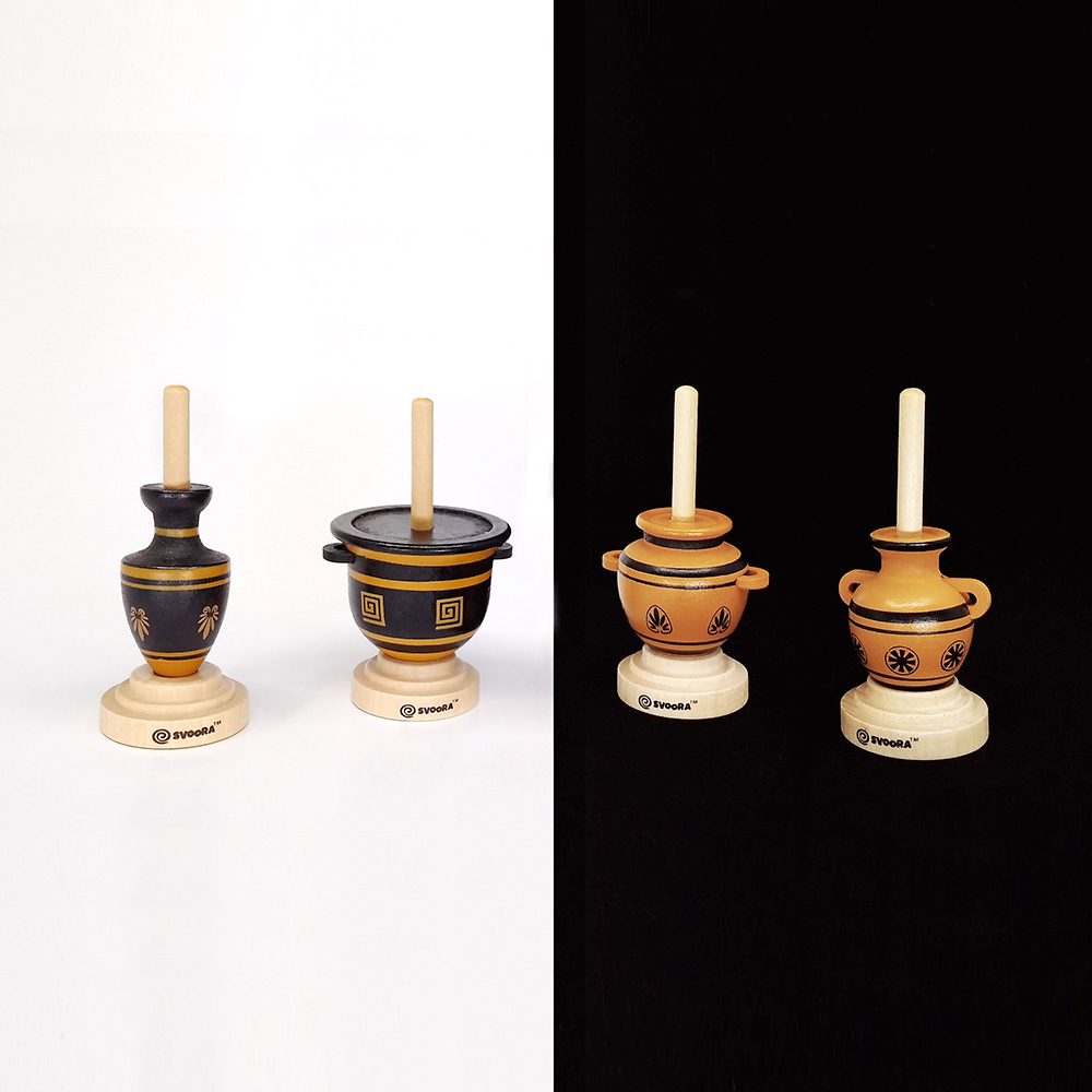 כל סביבון עץ עשוי מחומרים וצבעים איכותיים שנבחרו בקפידה והוא בעל מעמד ייעודי שמדגיש את יופיו הקלאסי.