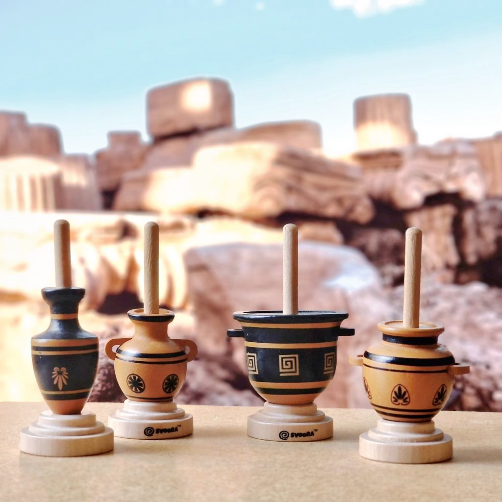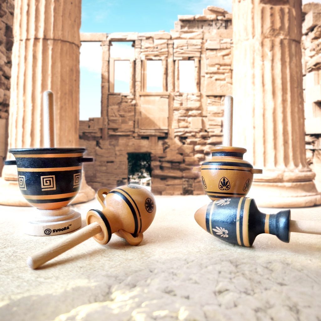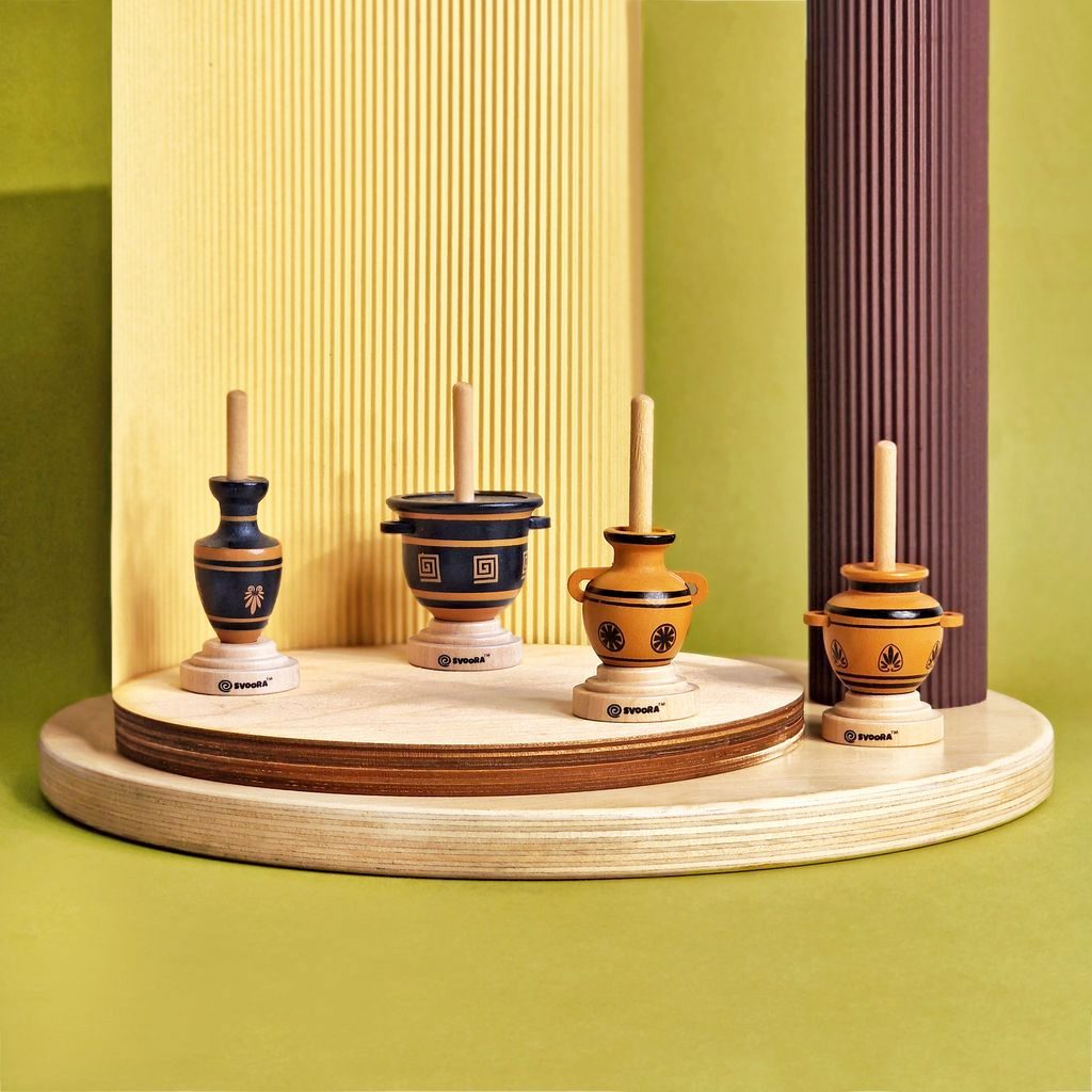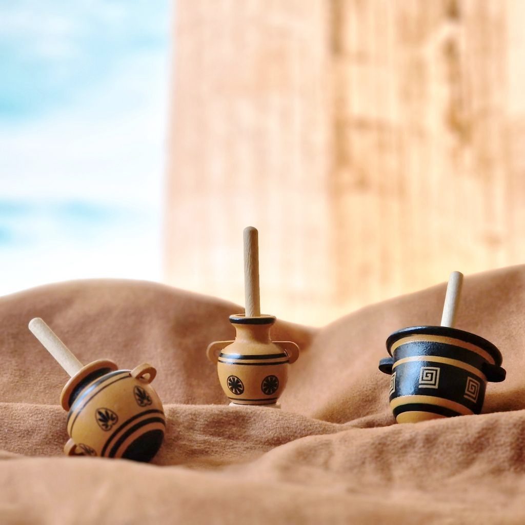 אוסף של סביבוני עץ בצורת אגרטלים יוונים עתיקים שיחיו אצלכם על המדף, את המסורת היוונית העתיקה.