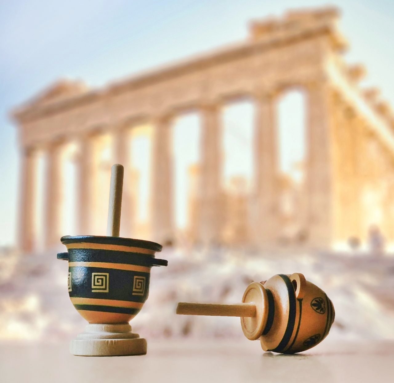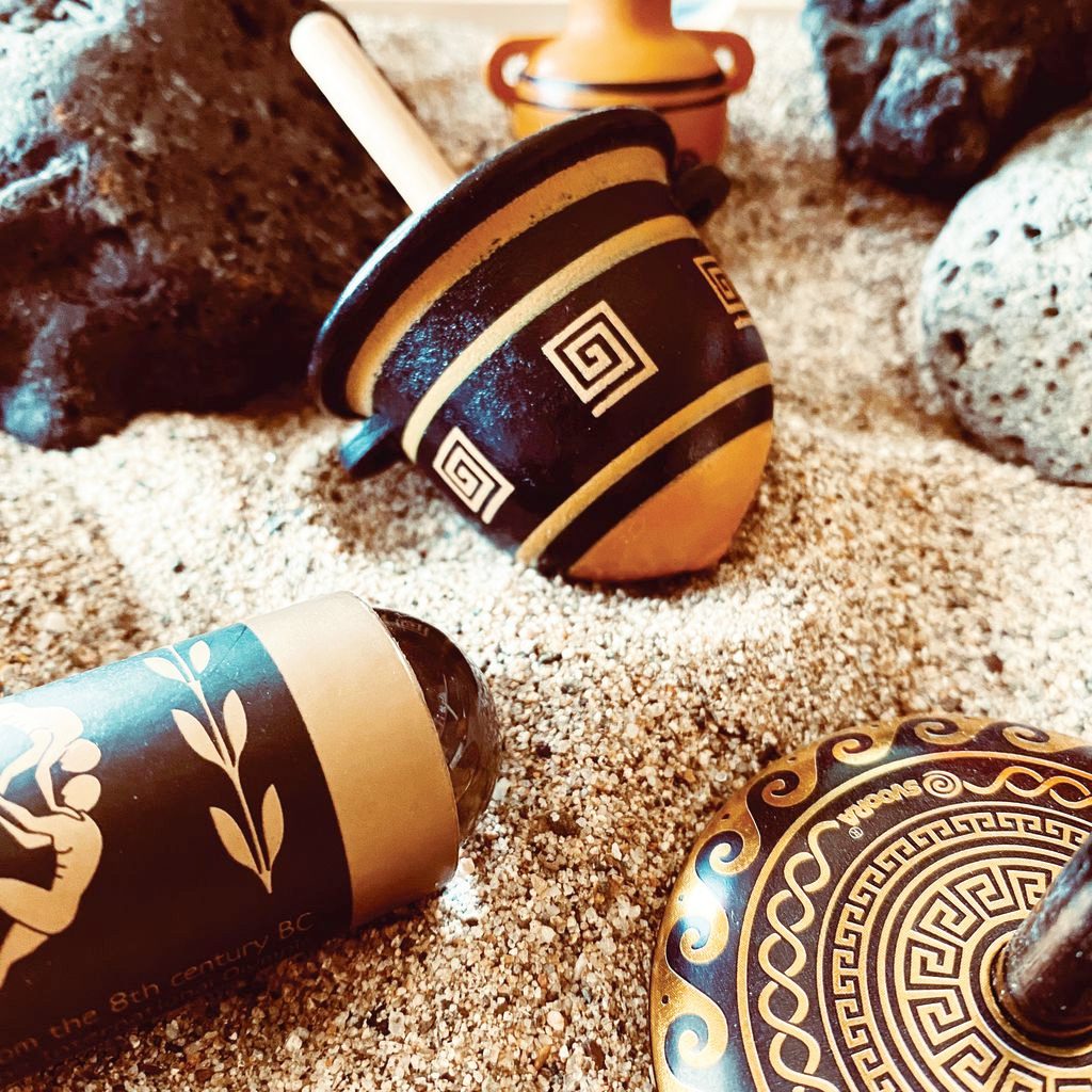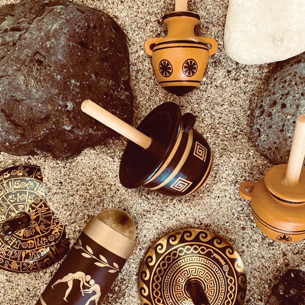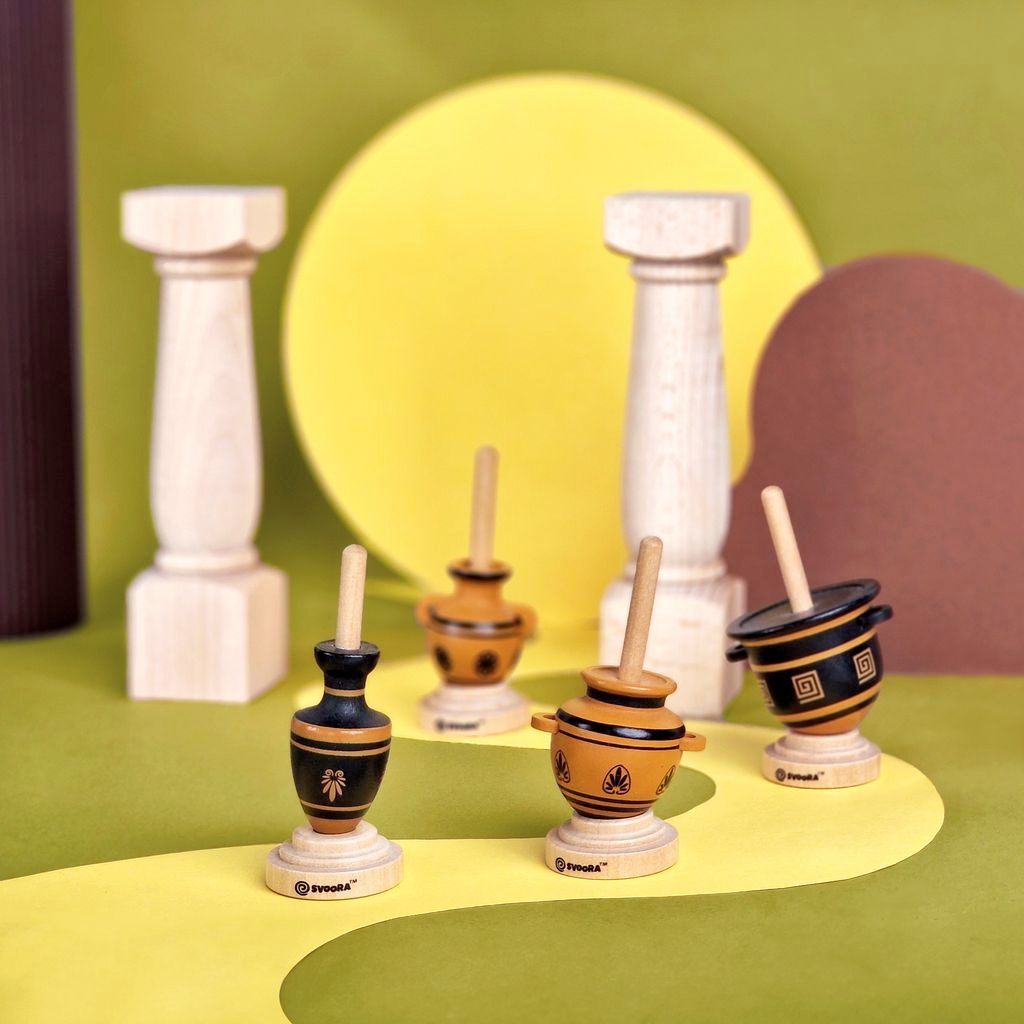 אוסף של סביבוני עץ בצורת אגרטלים יוונים עתיקים שיחיו אצלכם על המדף, את המסורת היוונית העתיקה.